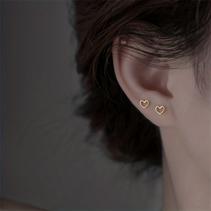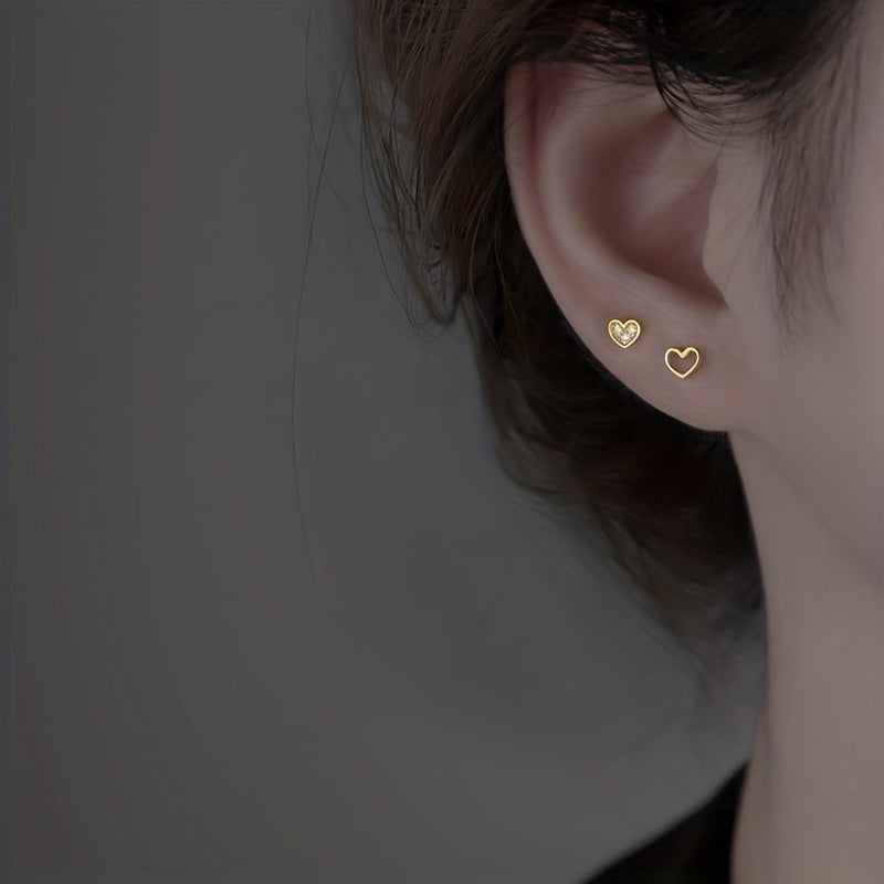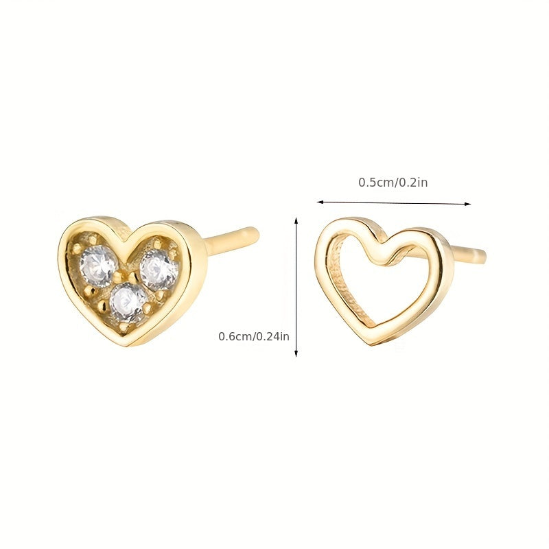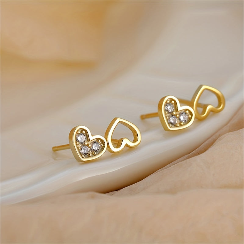 Add a touch of sparkle with these heart-shaped stud earrings featuring sparkling zircons. Made of copper with 14K plating, these earrings are perfect for a female gift.