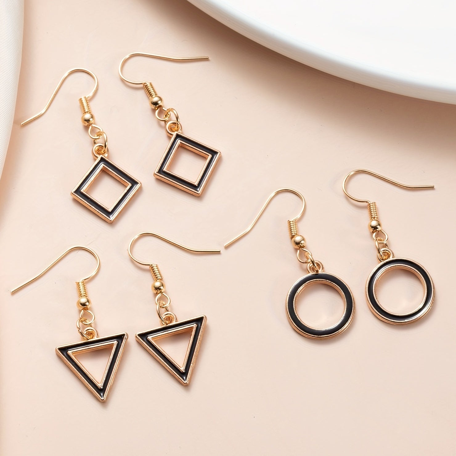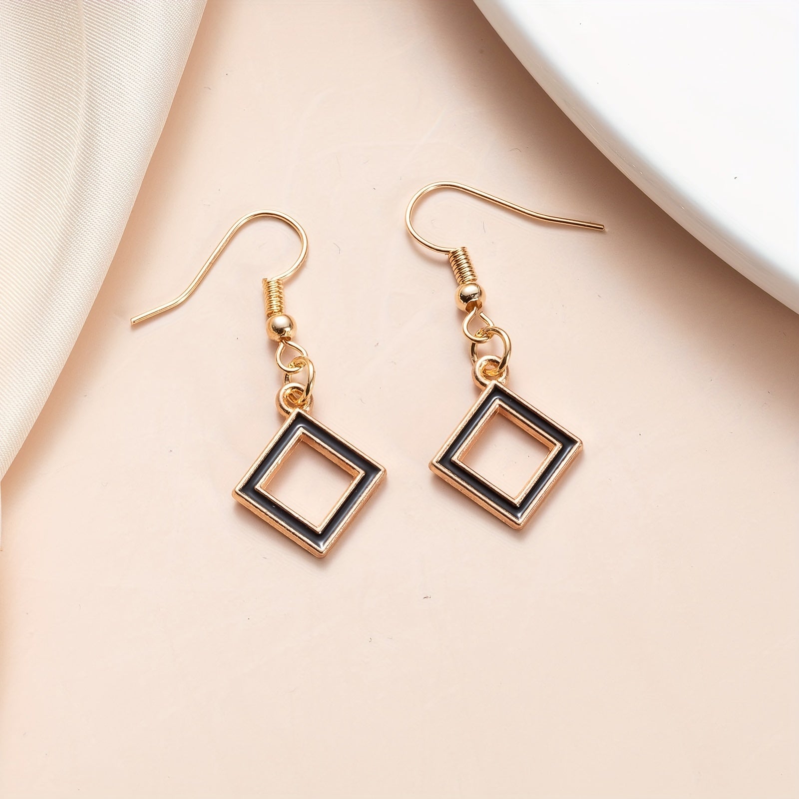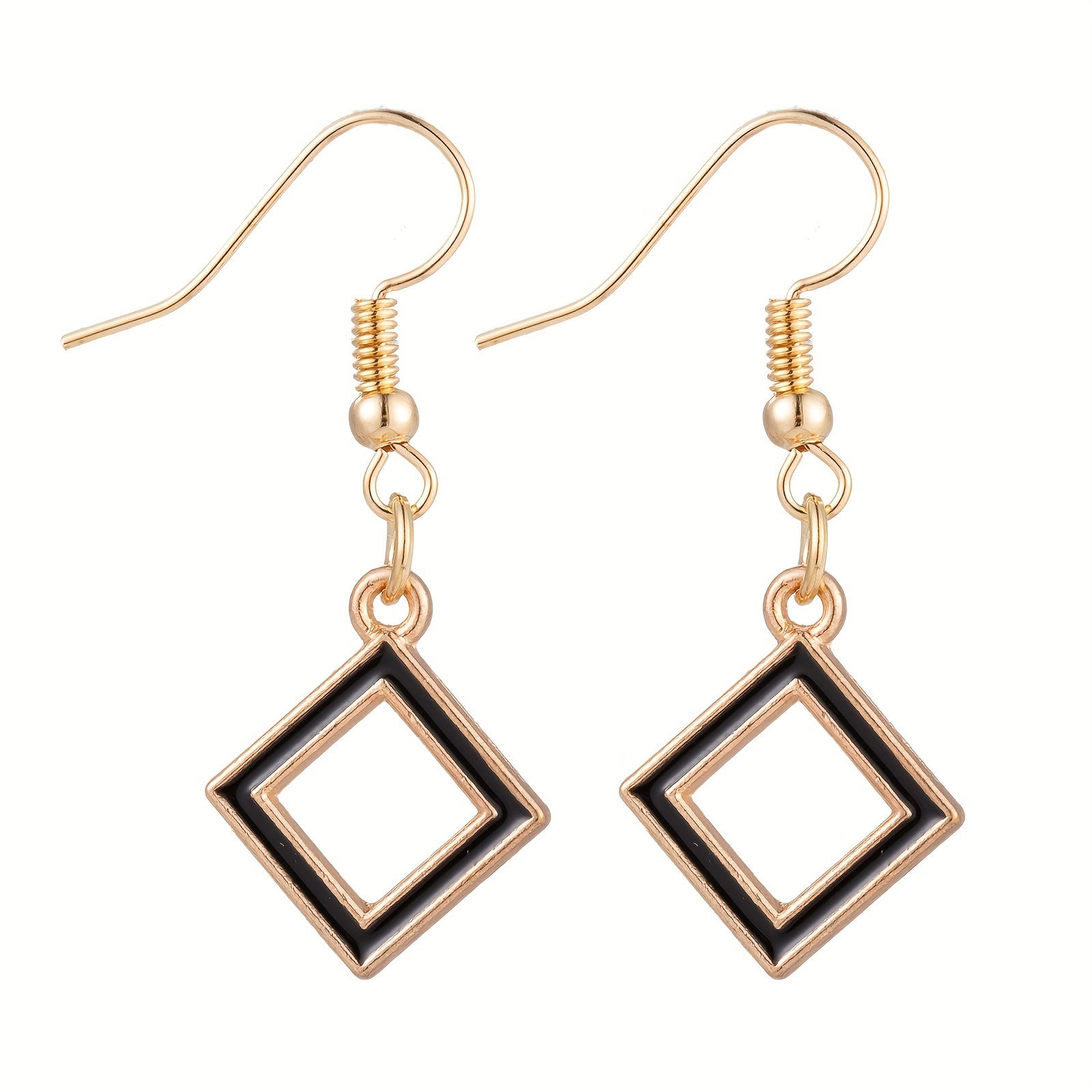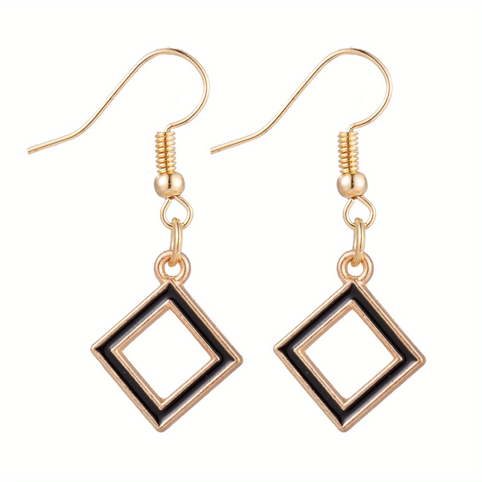 These dangle earrings are made of zinc alloy with a retro style design. The hollow geometric shape and enamel finish add a unique touch to your outfit. Perfect as a gift for a female friend or loved one.