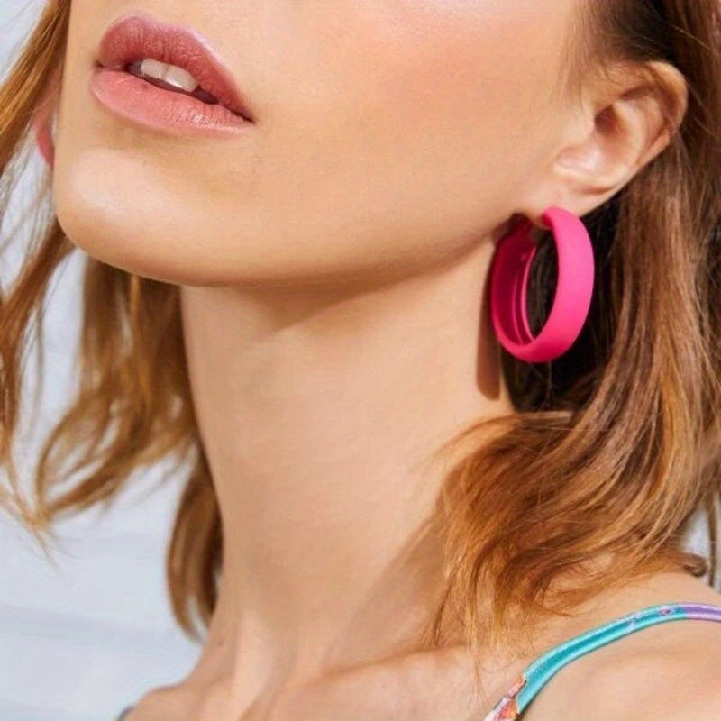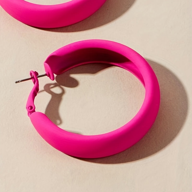 These retro hot pink hoop earrings are a stunning addition to any outfit. Made from high-quality alloy with 18K gold plating, these earrings are delicate and stylish. Perfect as a gift for women and girls.