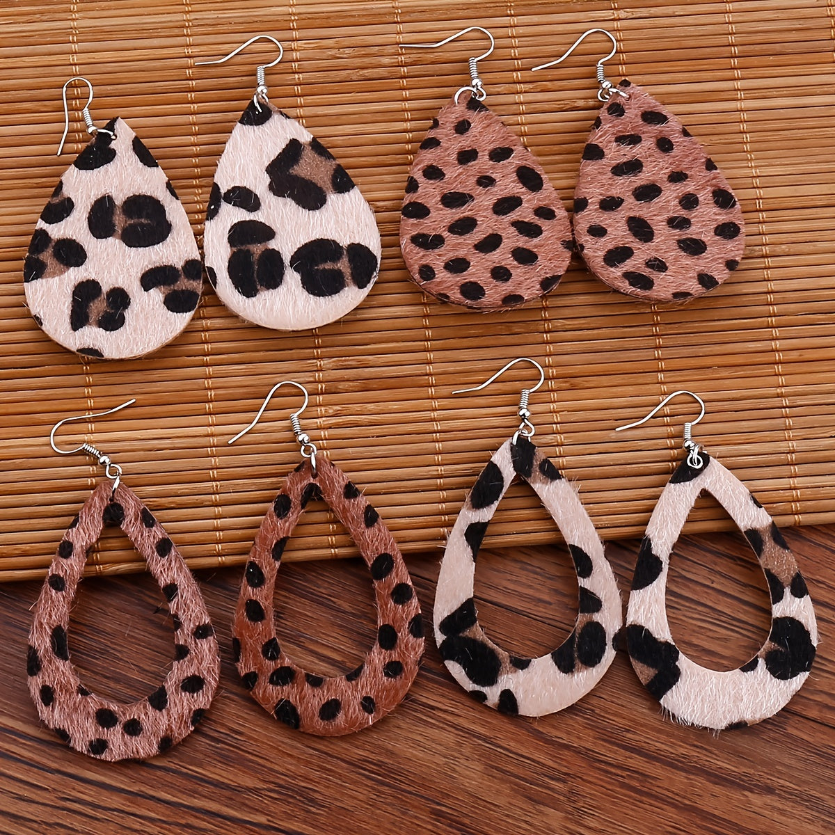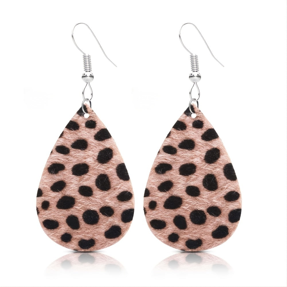 These double-sided PU leather earrings feature a stylish leopard print design with a teardrop shape. Perfect for parties and other occasions, these earrings are sure to add a touch of glamour to any outfit.