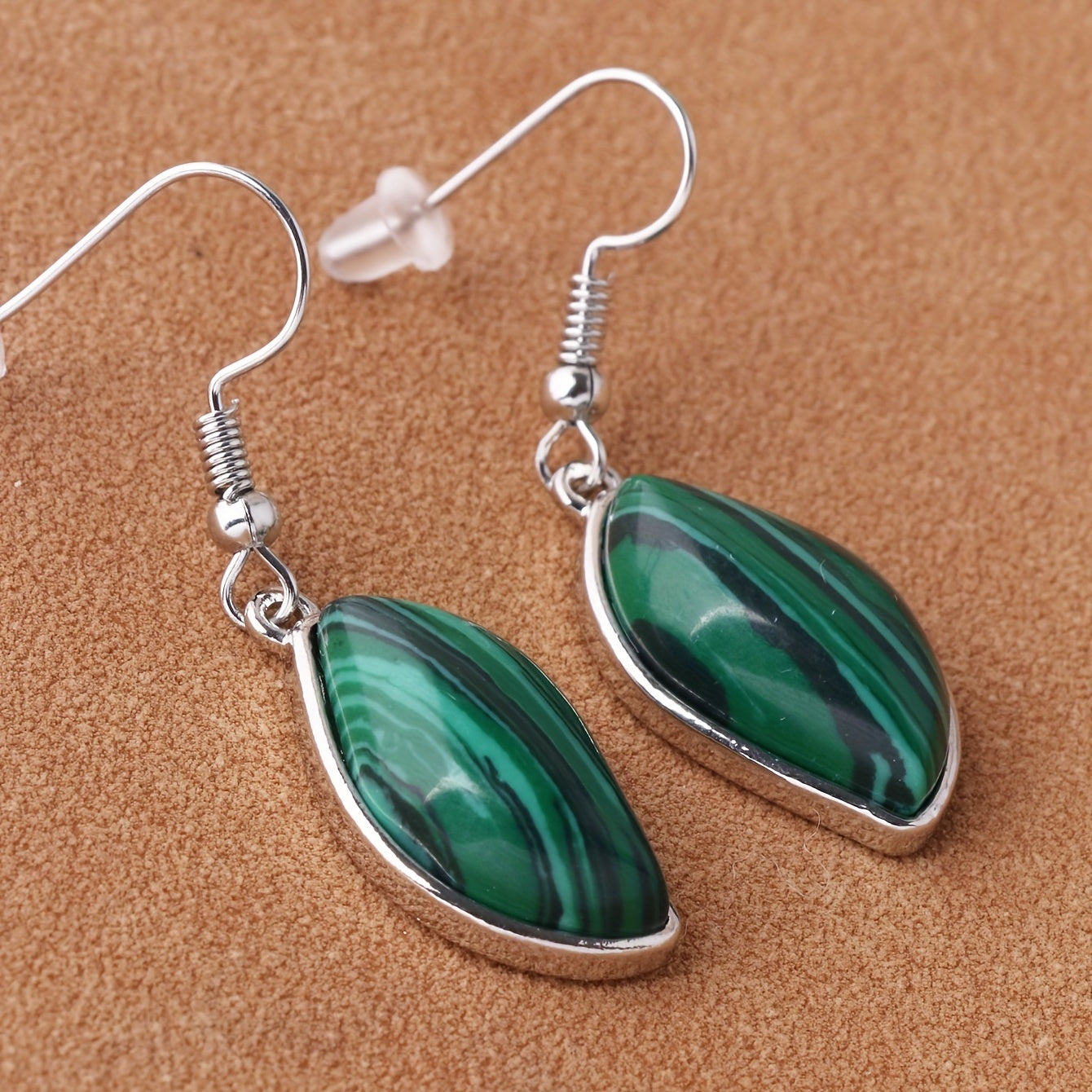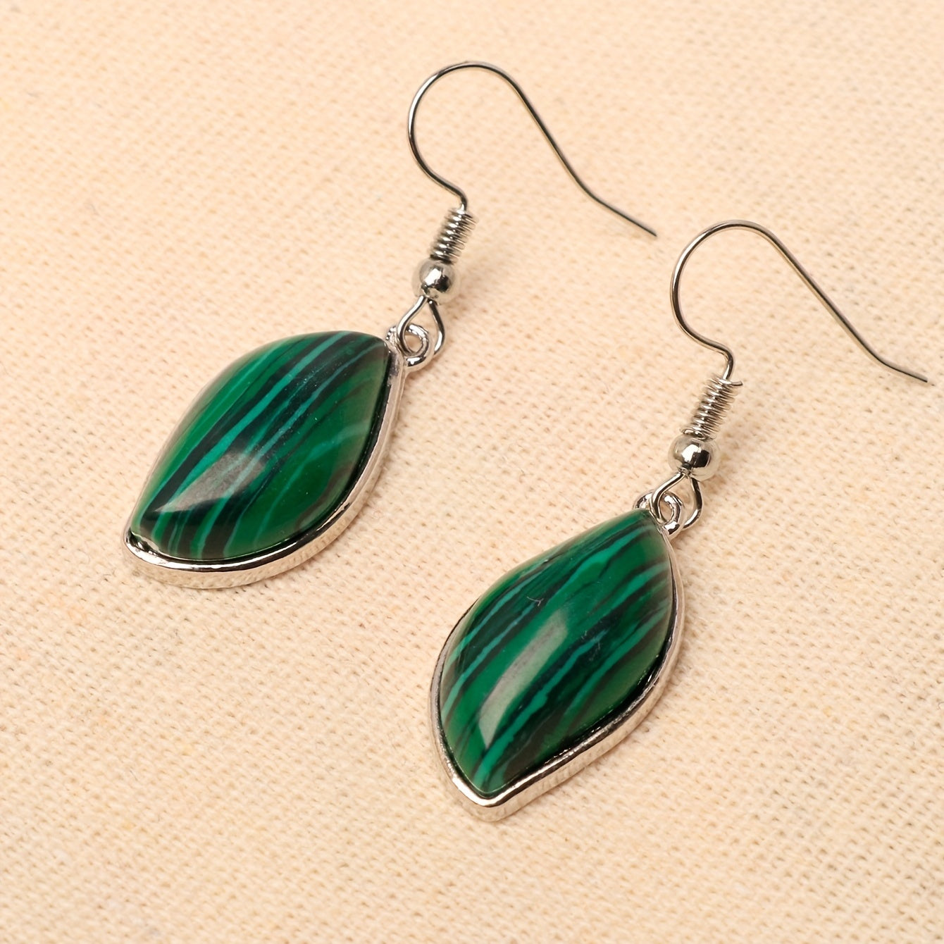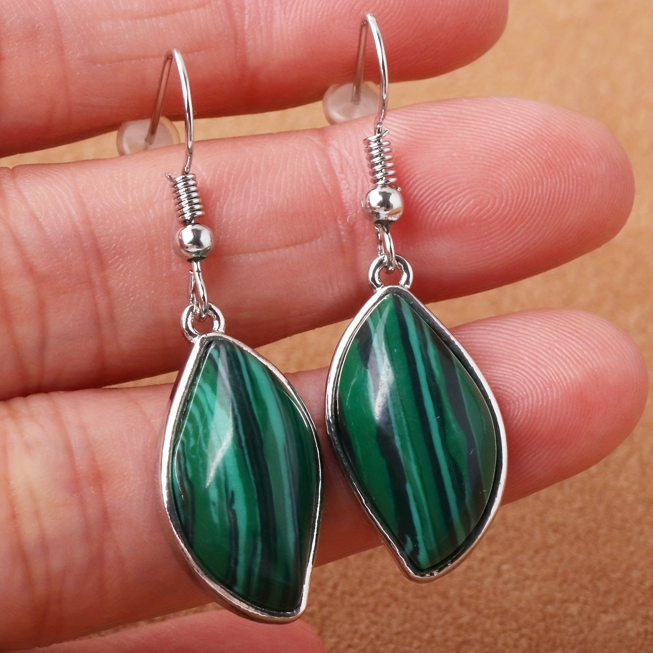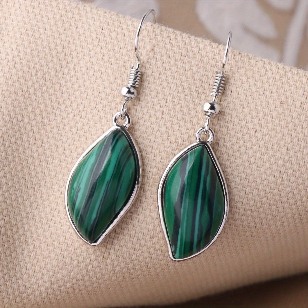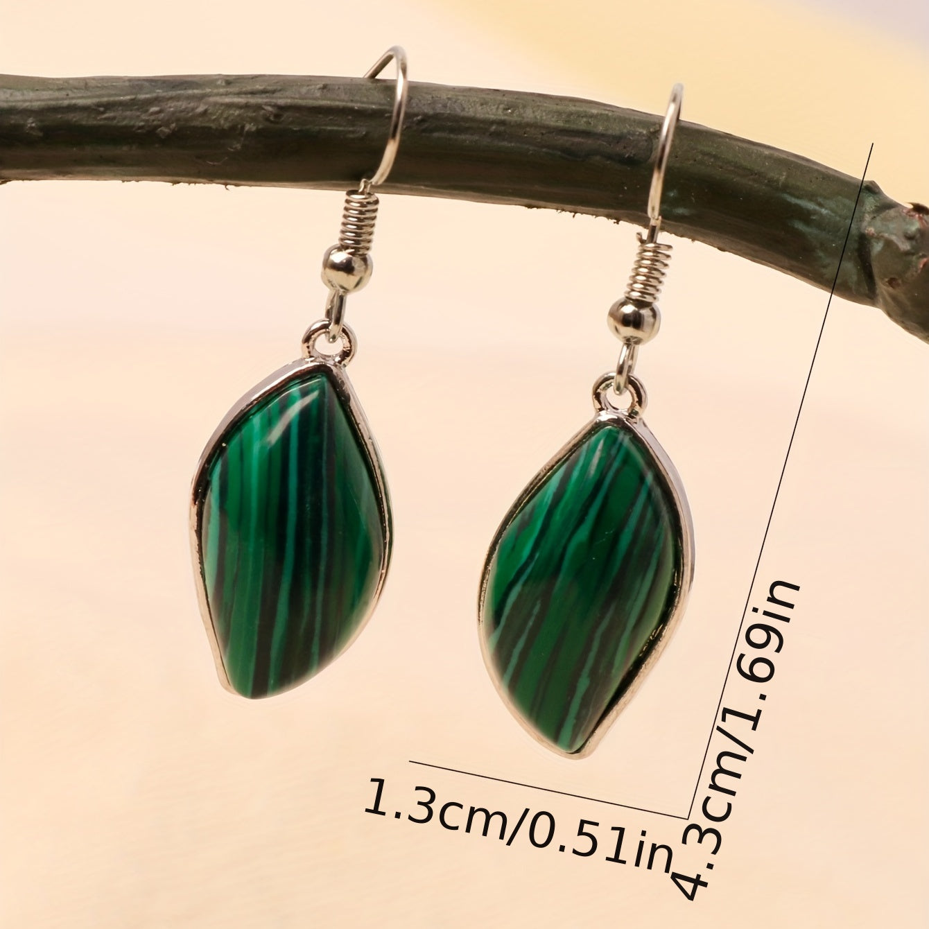 Add a touch of nature-inspired beauty to your look with these malachite dangle earrings featuring irregular texture leaves. These ethnic style zinc alloy earrings are perfect energy ornaments.