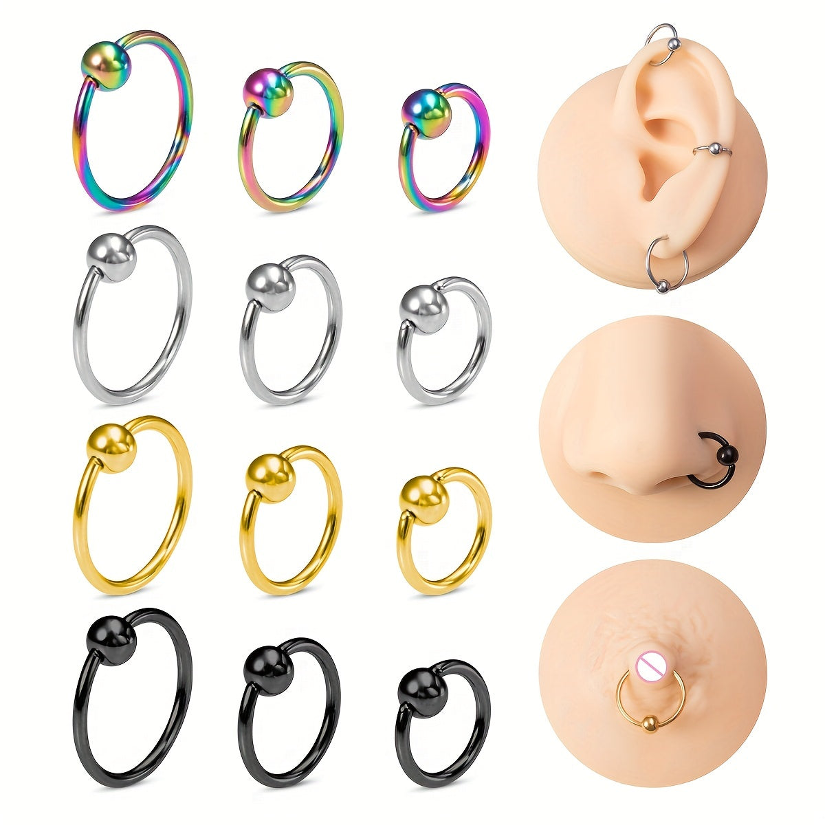 This pack includes 3 captivator rings in different sizes for nose, nipple, and eyebrow piercing. Each ring has a clip ball design for easy attachment.