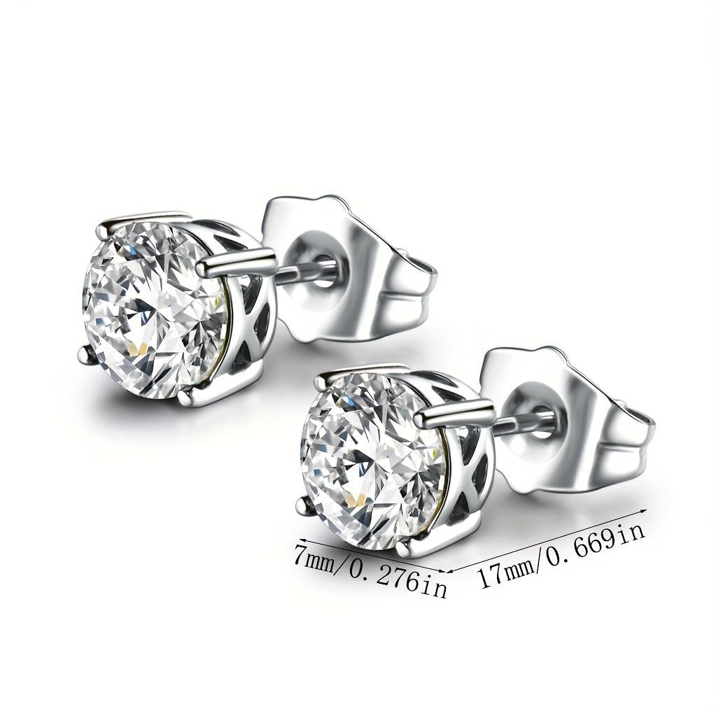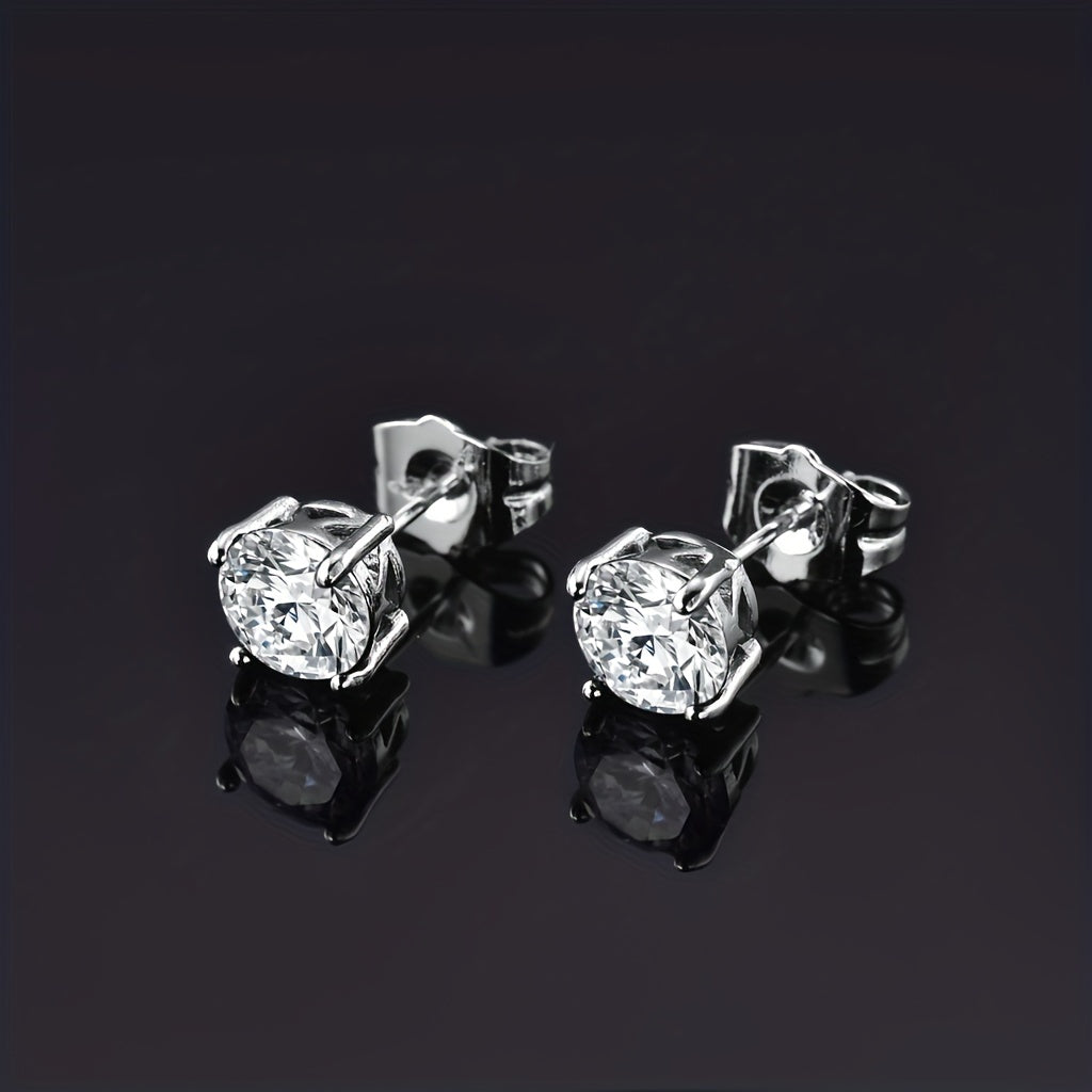 Men's Brass Stud Earrings Set with Stone Cartilage CZ Earrings
