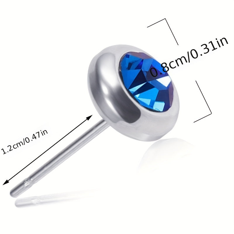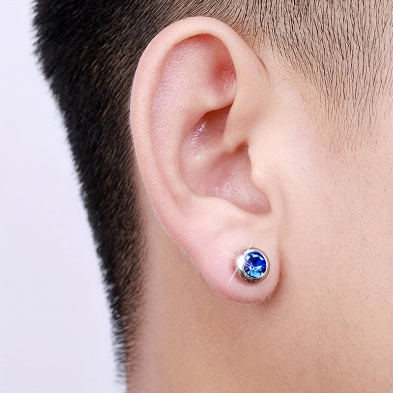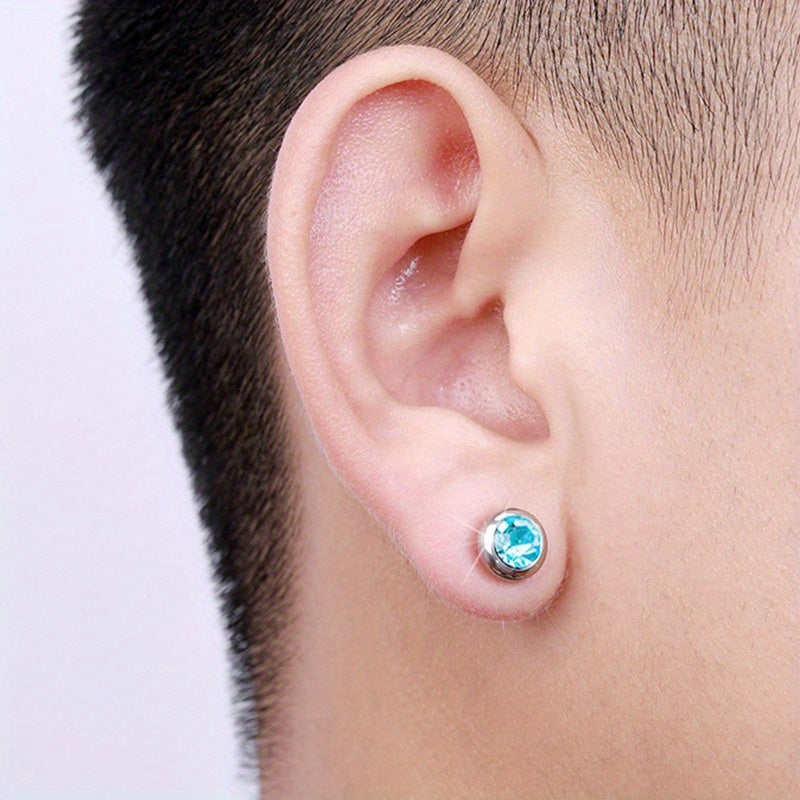 Men's Colorful Crystal Stud Earrings Hypoallergenic