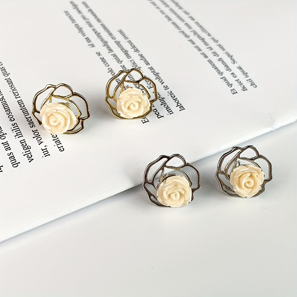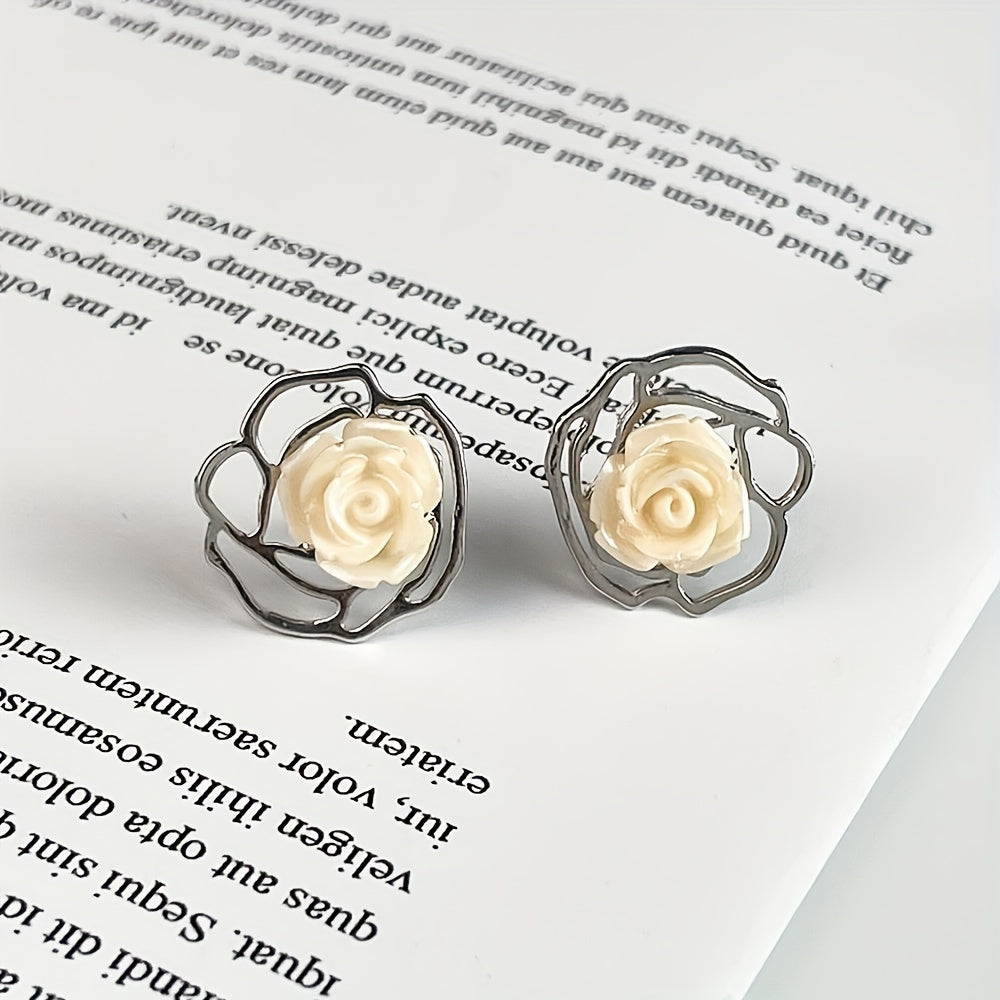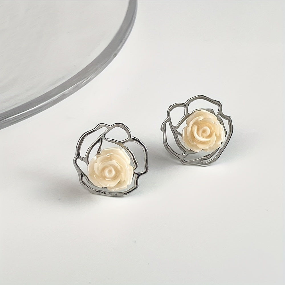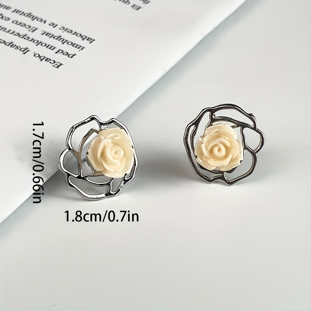 These stylish men's stud earrings feature a unique hollow flower design made of high-quality zinc alloy.