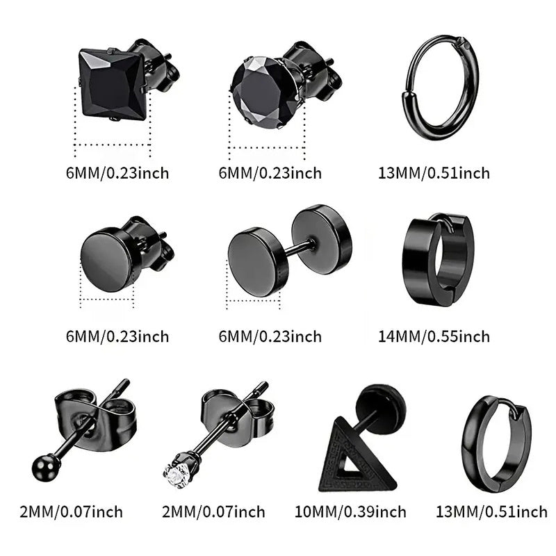 Enhance your edgy style with this 10-pair set of punk stud earrings. Made of stainless steel, these earrings are suitable for both men and women.