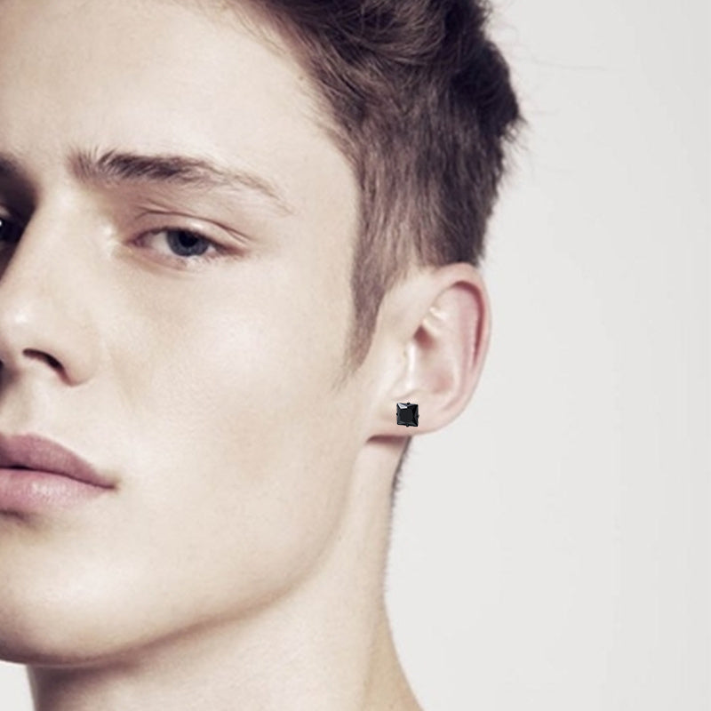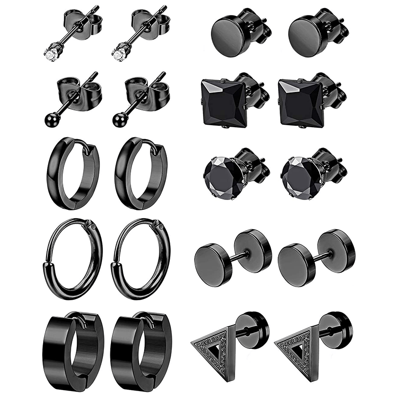 Men's Punk Stud Earrings Set Stainless Steel Piercing Chain Hoop Unisex