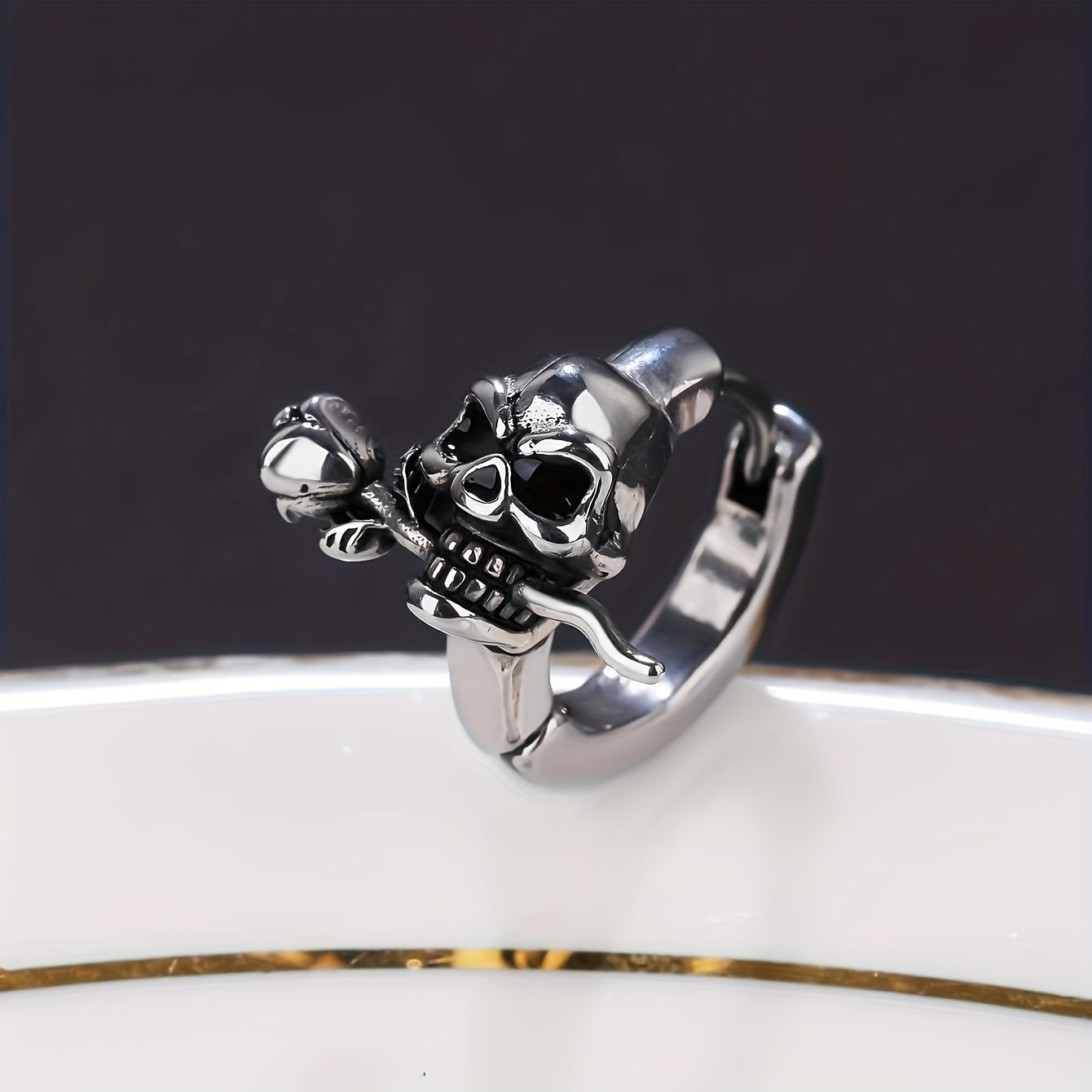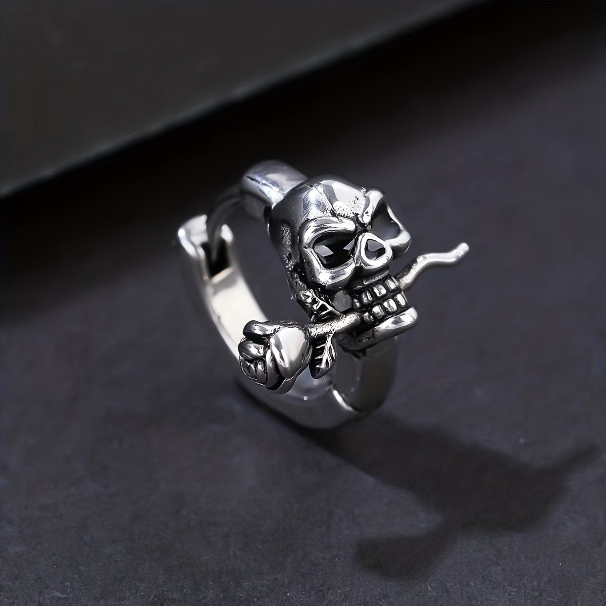 Embrace your edgy side with this punk style earring featuring a retro skull stud and rose design. Suitable for both men and women, this earring adds a touch of rebellious charm to any outfit.