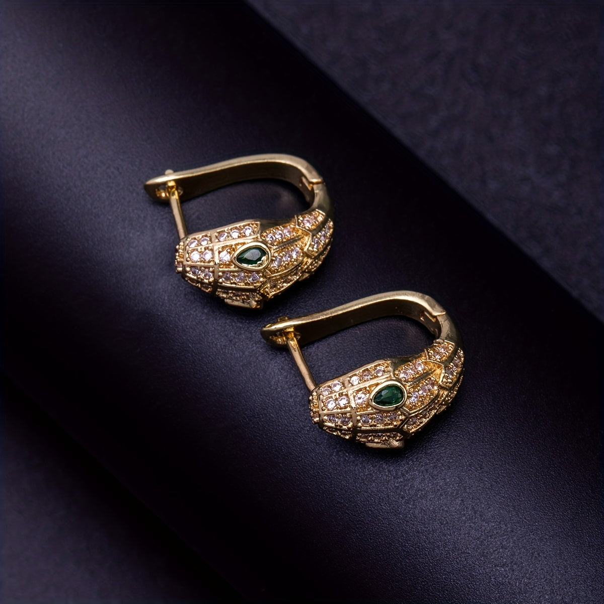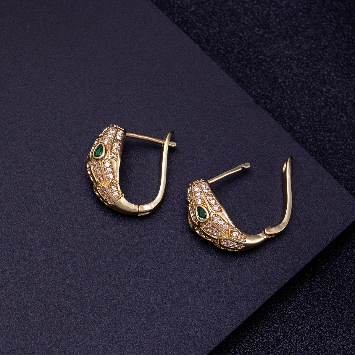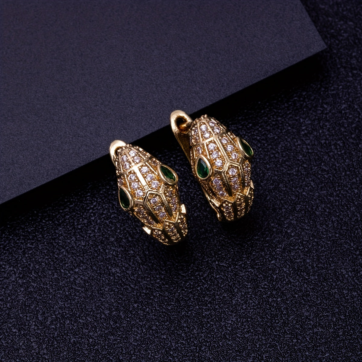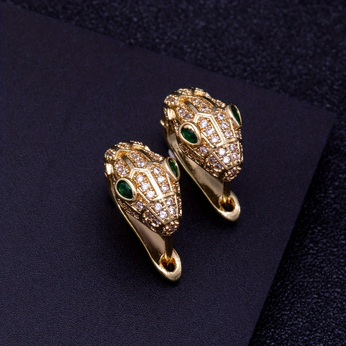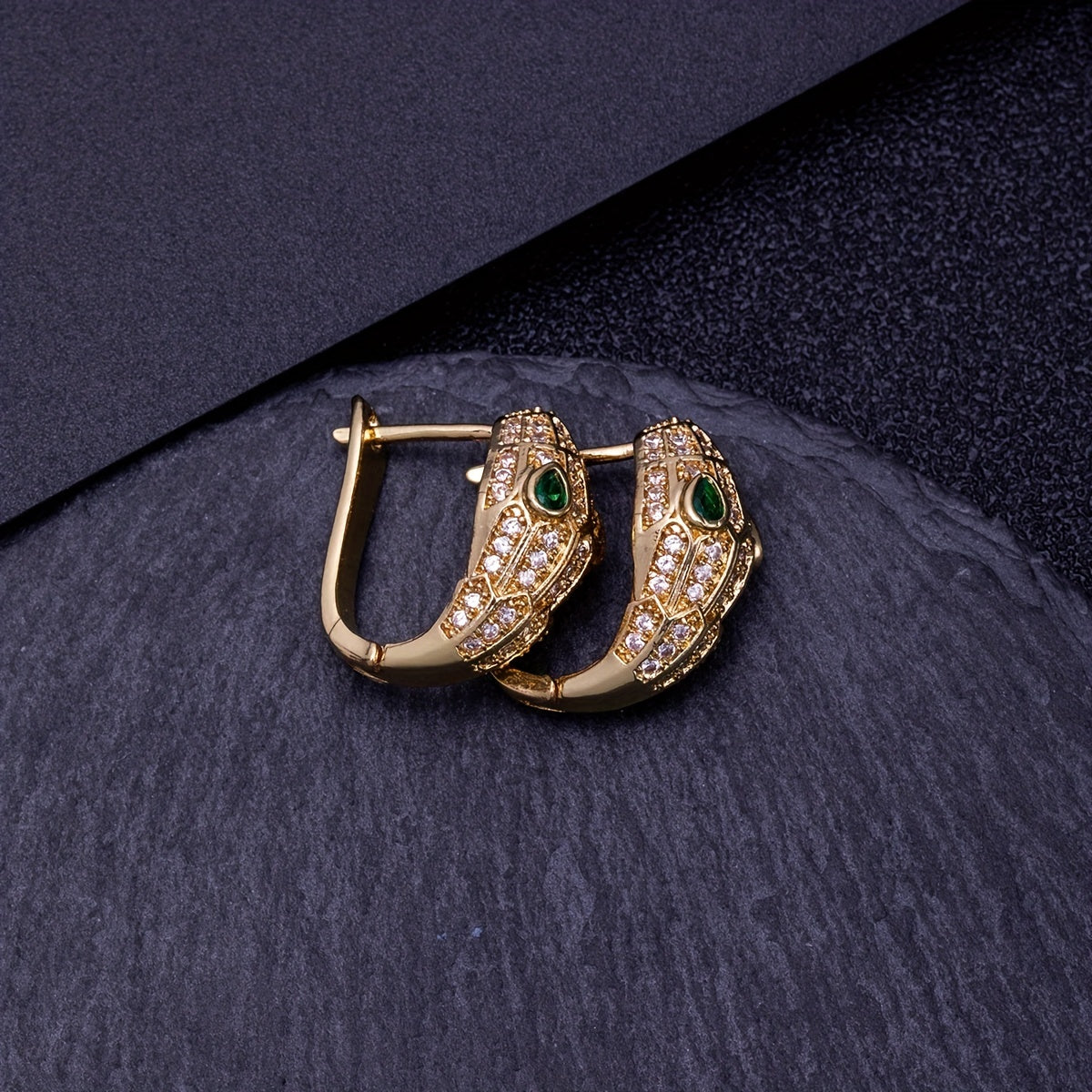 These snake-shaped ear studs are a stylish addition to your jewelry collection. Made with golden plating and zircon, they are suitable for both men and women.