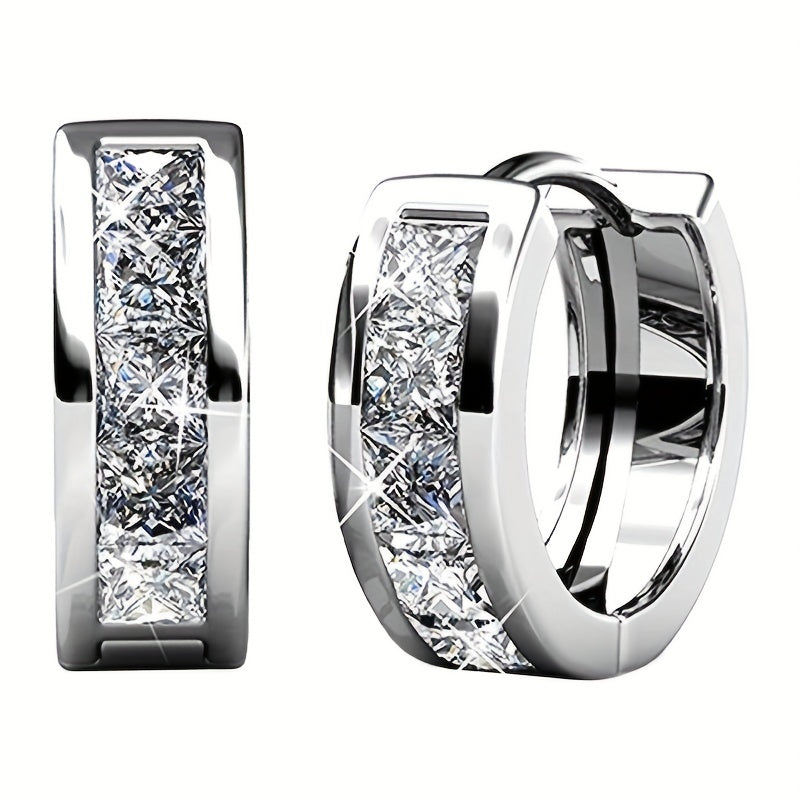 Enhance your look with these fashionable zircon stud earrings. Available in golden or silvery, perfect for any occasion.