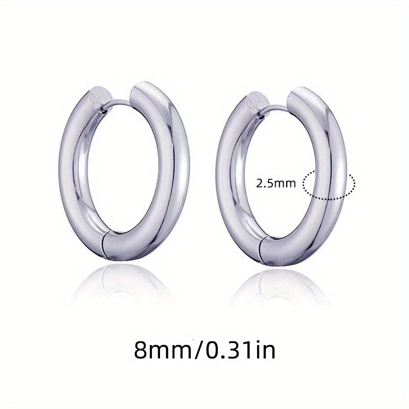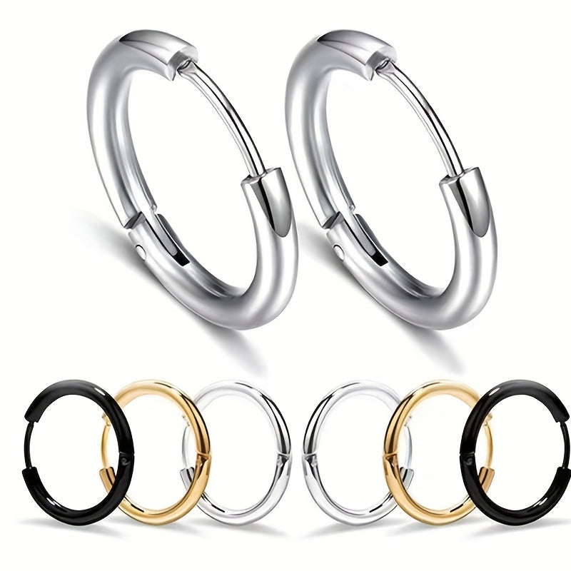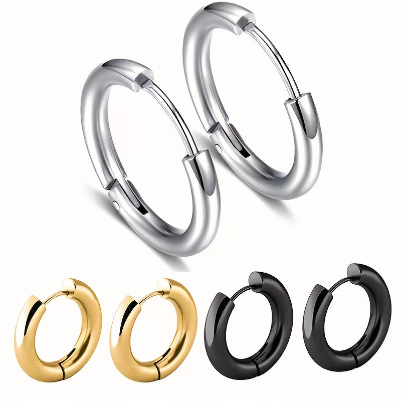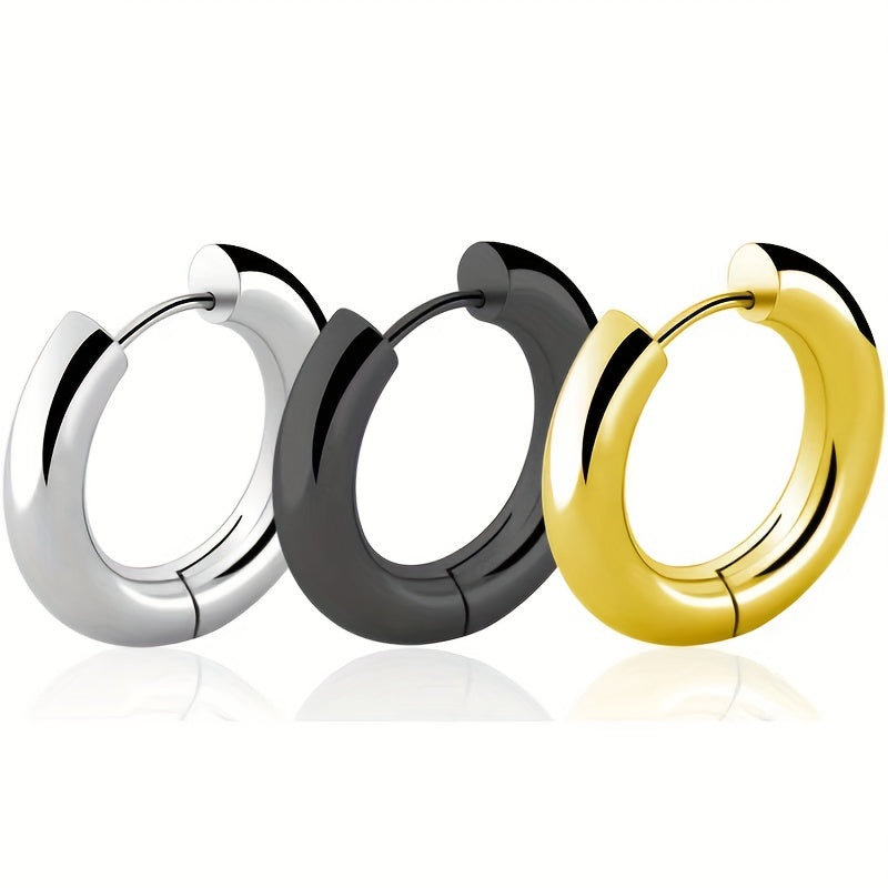 These hoop earrings feature a minimalist style with a golden and silvery design. Perfect for daily casual wear, these earrings are made of high-quality stainless steel.