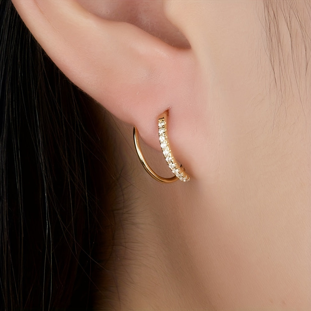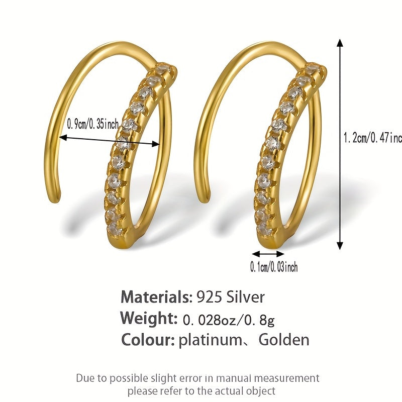 Upgrade your daily casual look with these golden and silvery hoop earrings featuring zircon decoration. Made from high-quality sterling silver 925, these earrings are perfect for adding a touch of elegance to your outfit.
