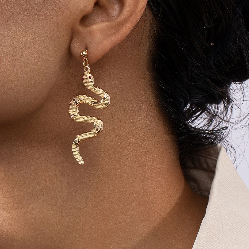 These music-inspired snake earrings are made of zinc alloy with a 14K gold plating. They make a great gift for any female who loves unique and stylish jewelry.