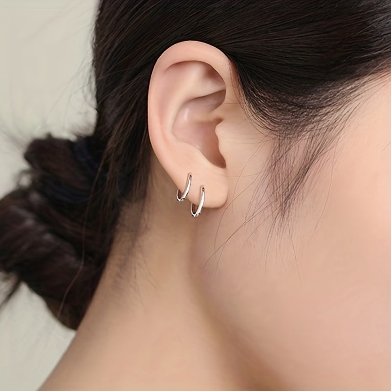 These stylish hoop earrings are perfect for adding a touch of elegance to any outfit. Crafted from sterling silver, they are durable and resistant to tarnishing. Ideal for everyday wear or as a thoughtful gift for a loved one.