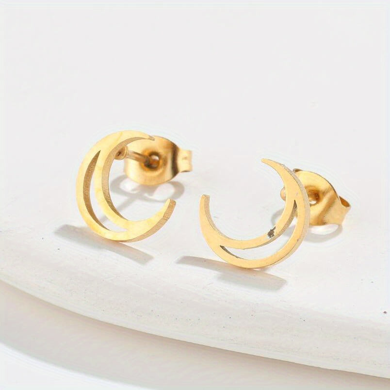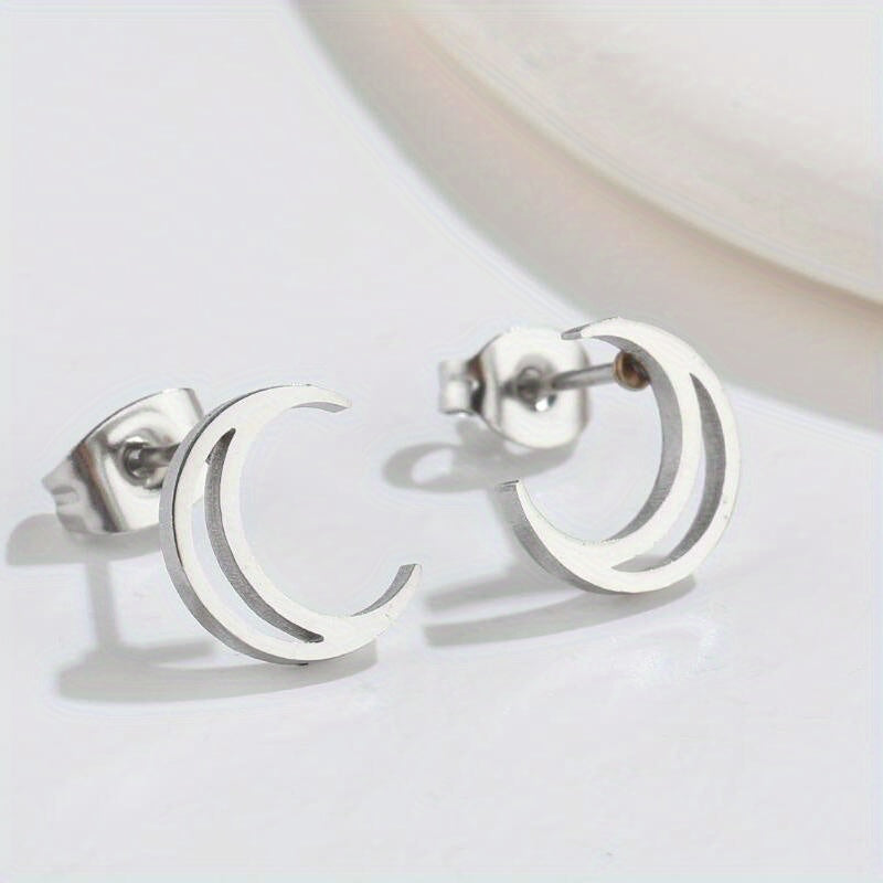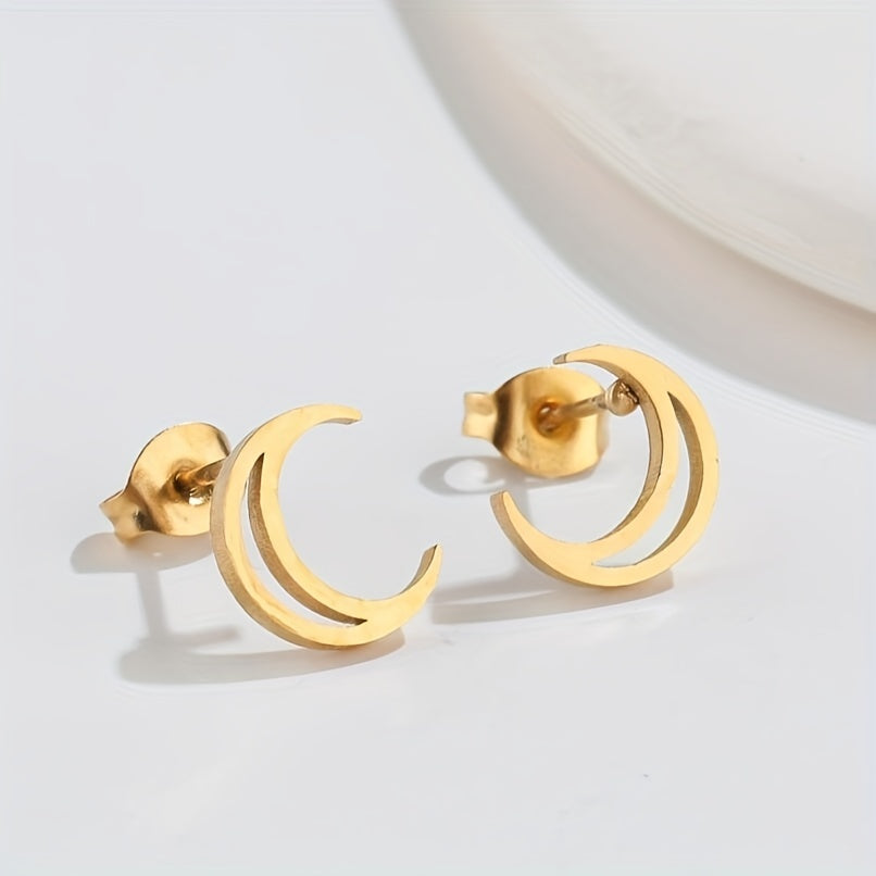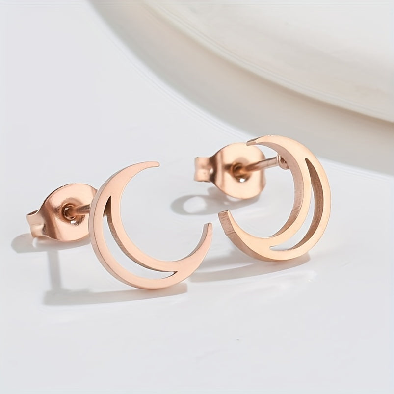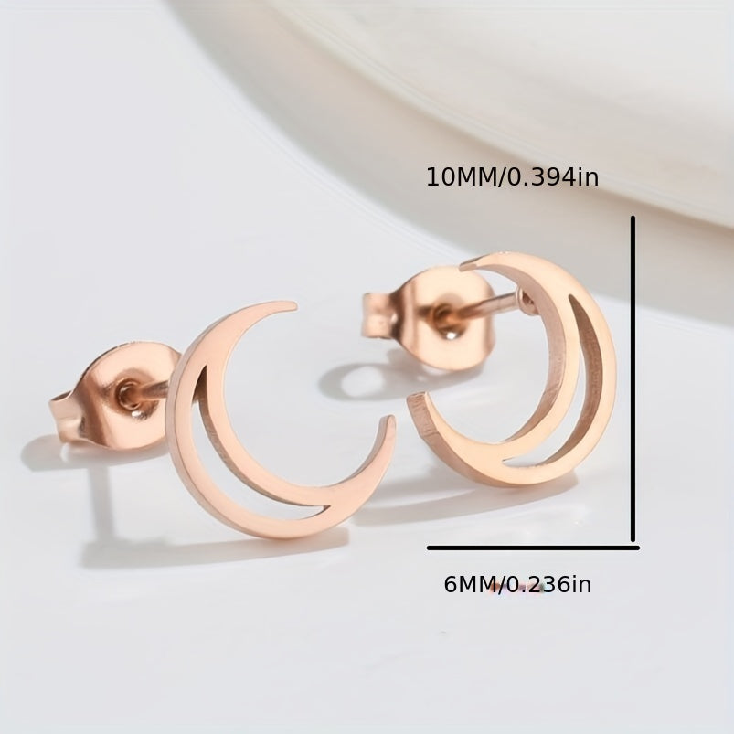 These fashionable minimal style earrings are perfect for couples who want to showcase their love for each other. Made from high-quality stainless steel, these moon stud earrings are versatile and can be worn with any outfit.