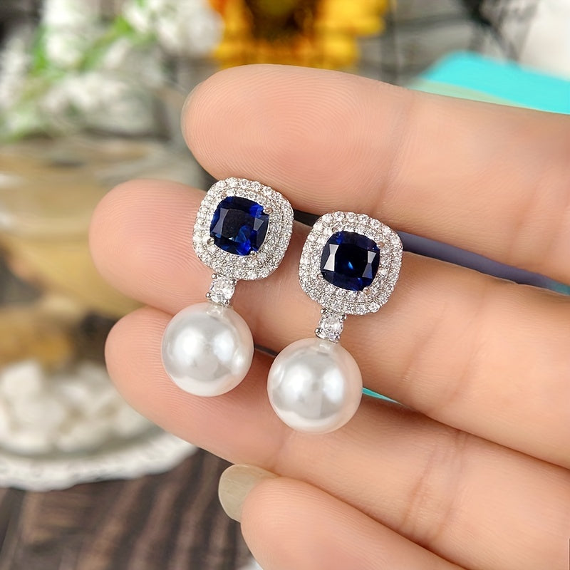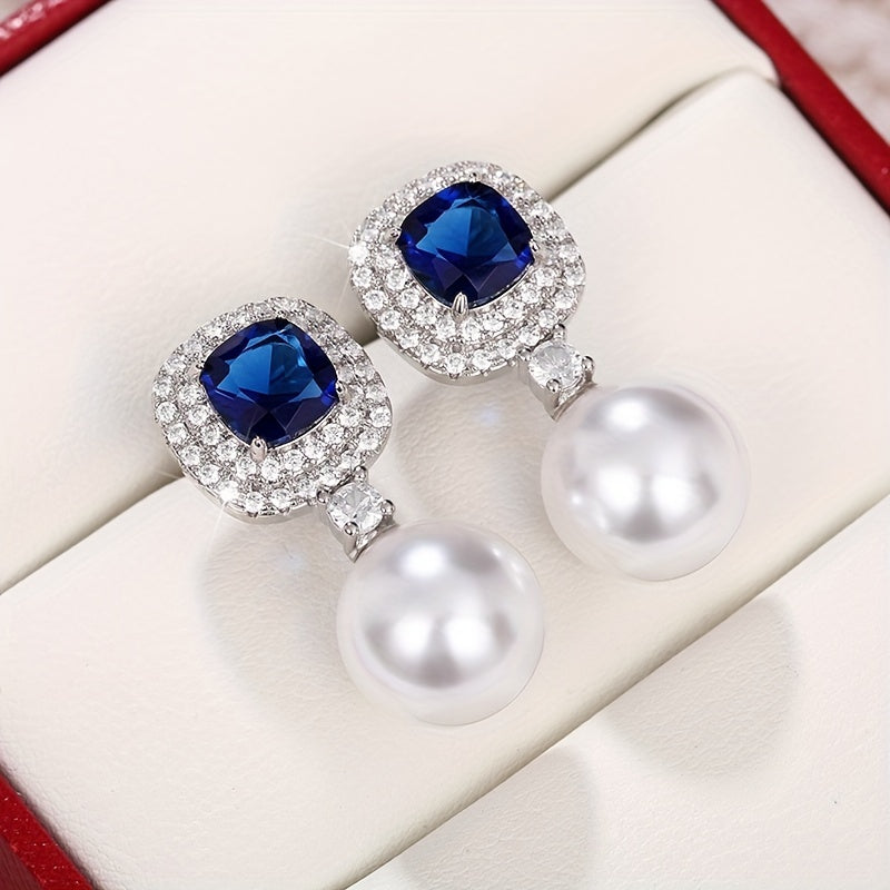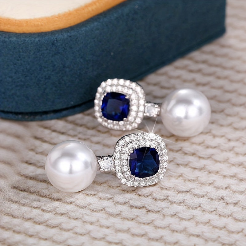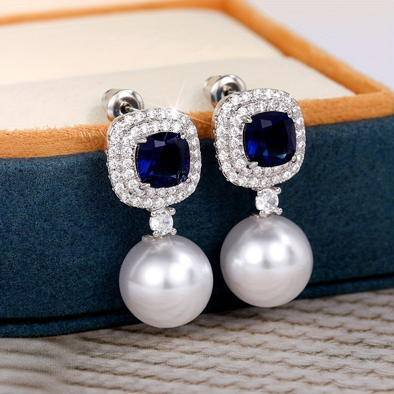 These retro style earrings are adorned with navy zircon and faux pearls, perfect for banquets and parties. The silver plated finish adds elegant charm to your look.