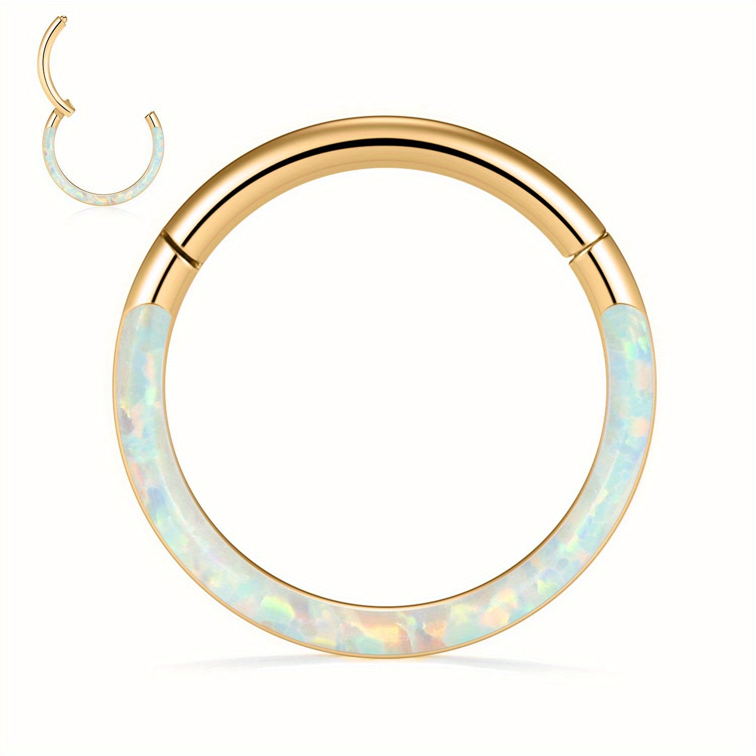 Add a touch of elegance to your outfit with these minimalist hoop earrings featuring opal decor. Made of stainless steel with 18K gold plating, perfect for daily wear.