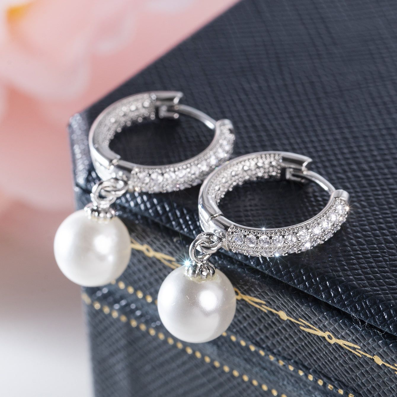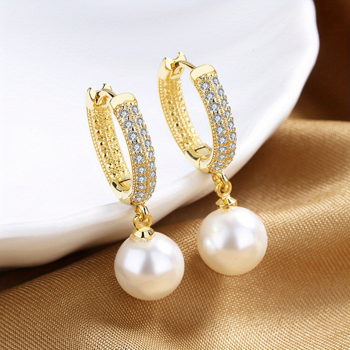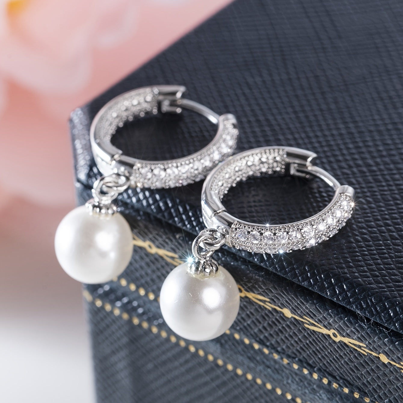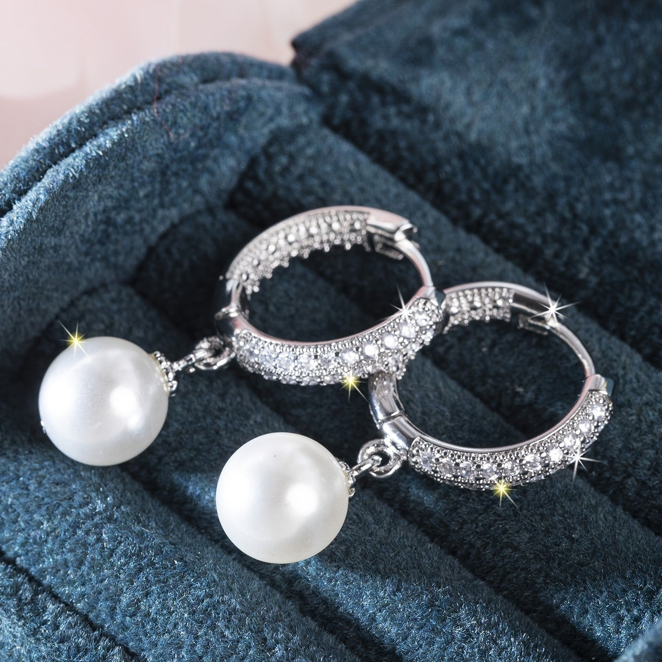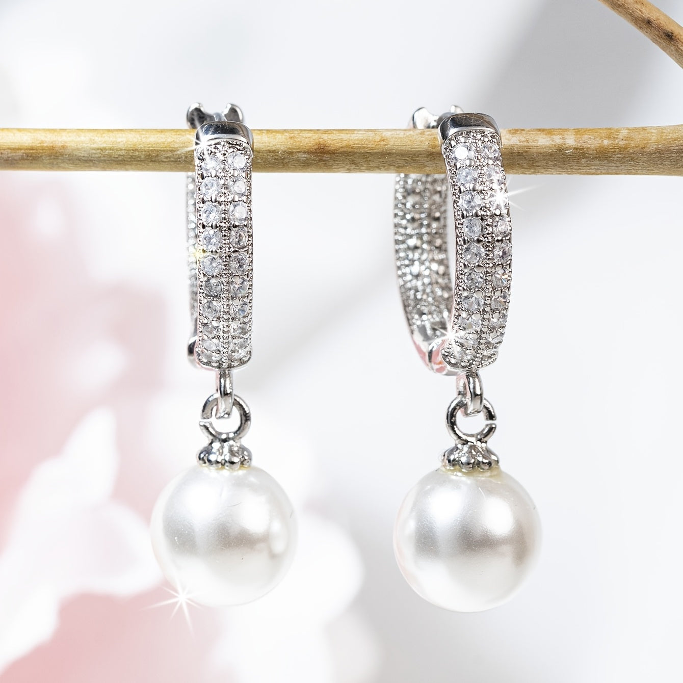 Add elegance to your outfit with these stunning pearl zircon earrings. Perfect accessory for any occasion.