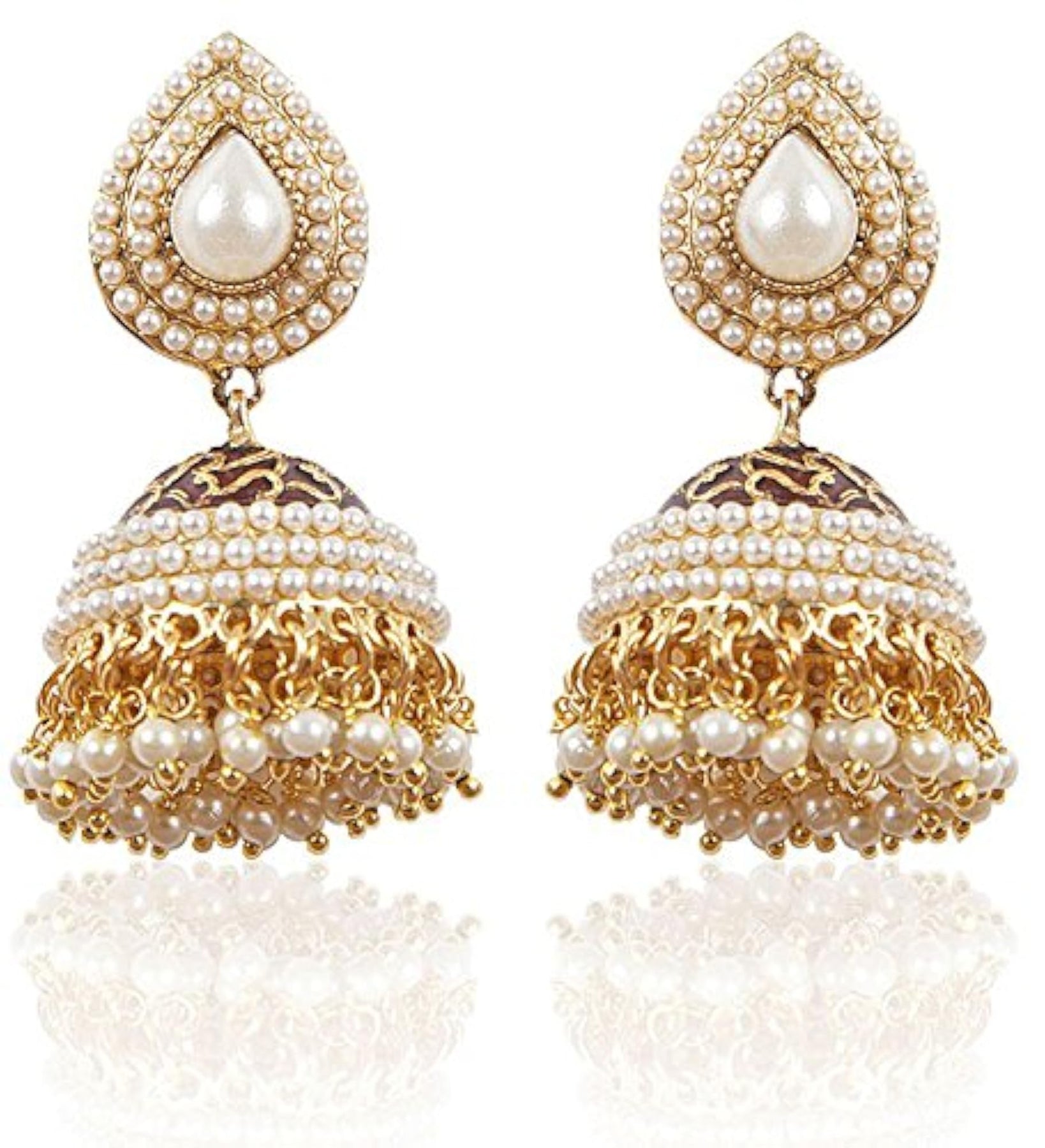 Elegant and classic plated pearl jhumki earrings designed for women.