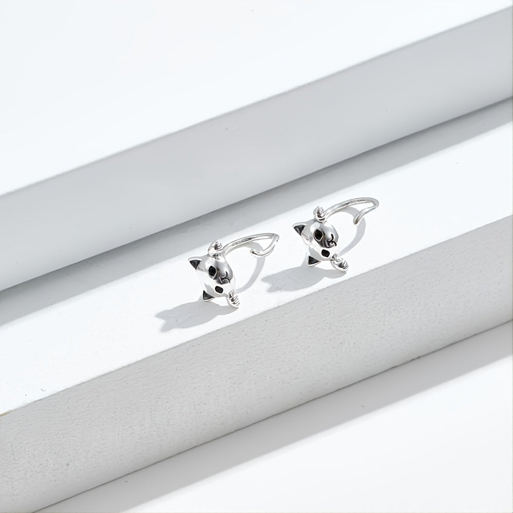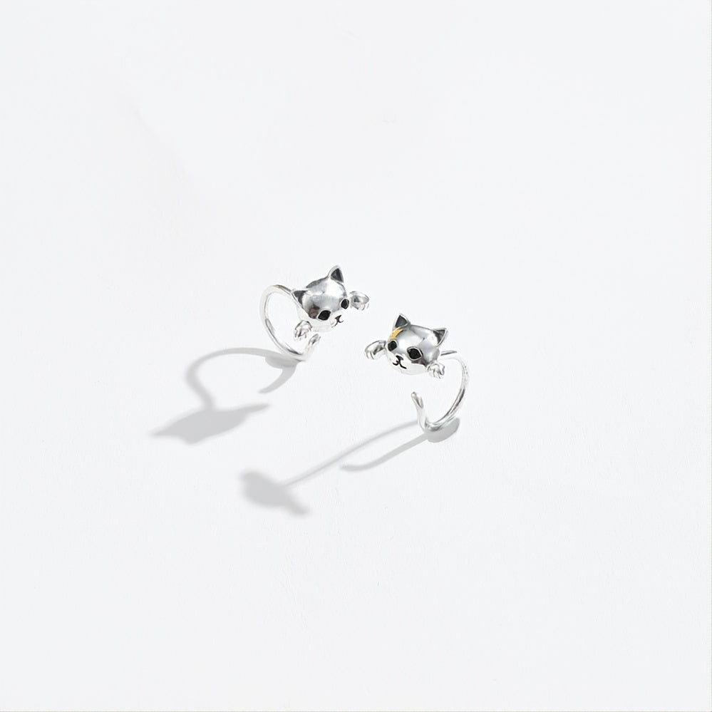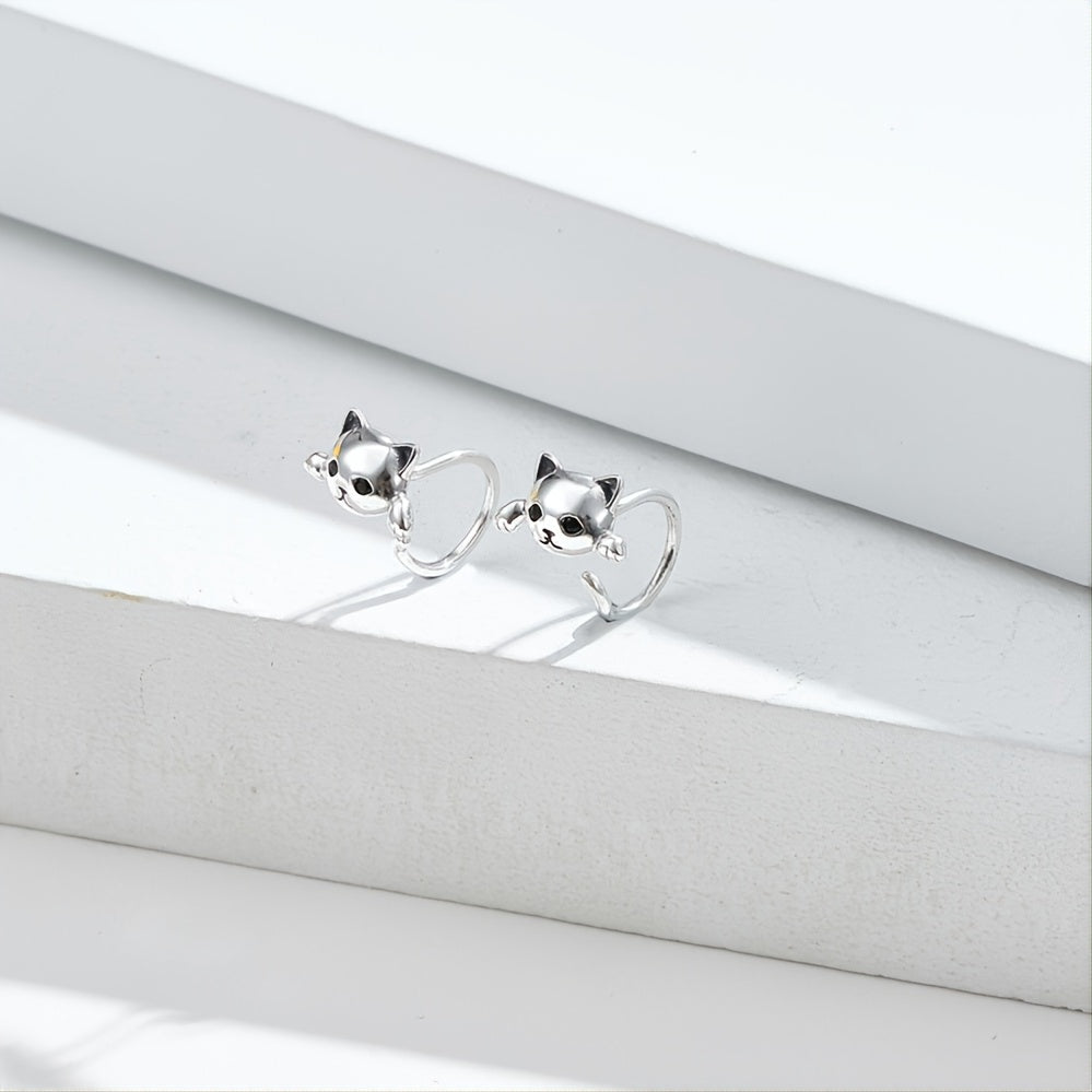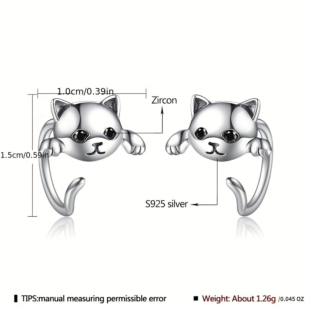 Adorable cat earrings made from hypoallergenic sterling silver with half huggie design. Features sparkling cubic zirconia for a touch of elegance.