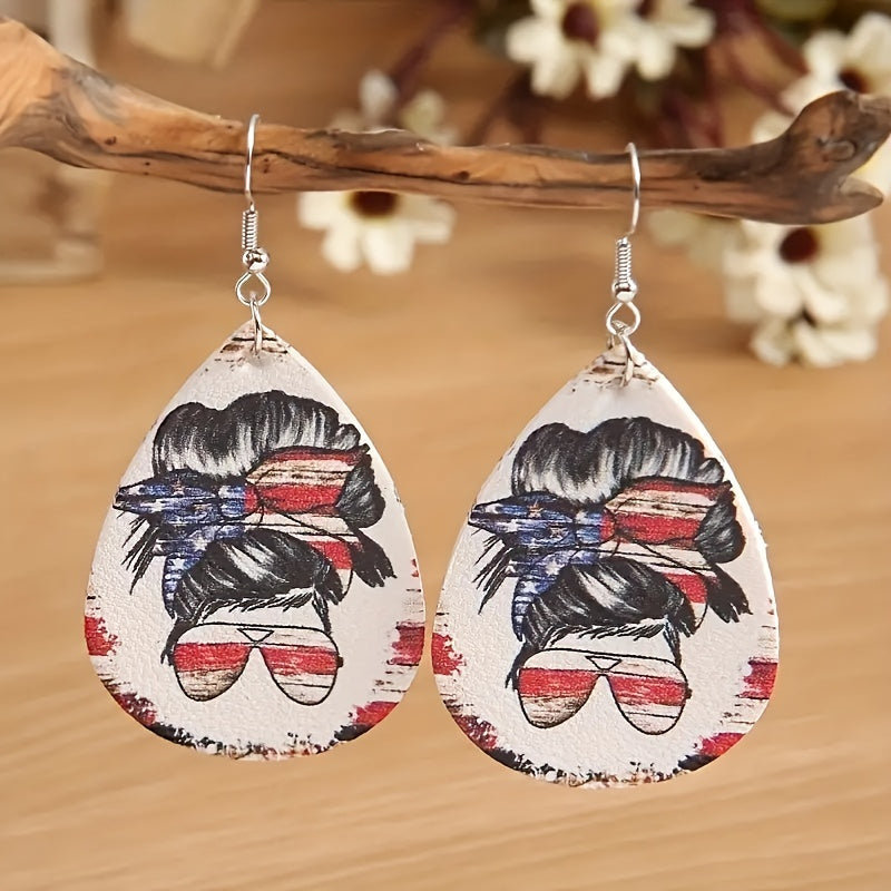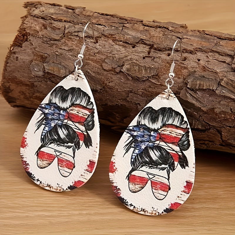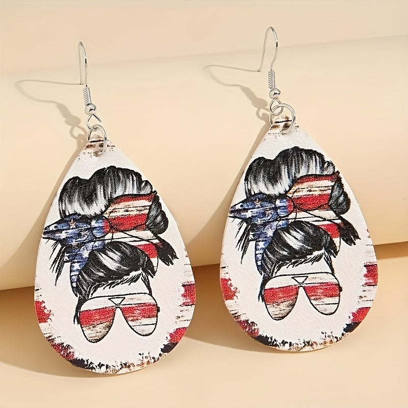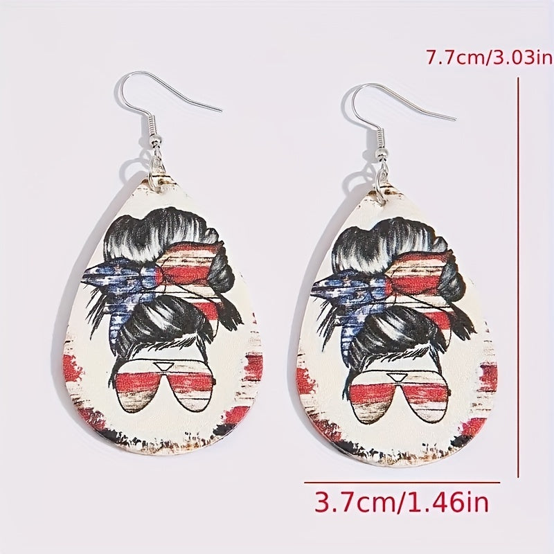 Printed Faux Leather Earrings Holiday Decorative Jewelry For Men