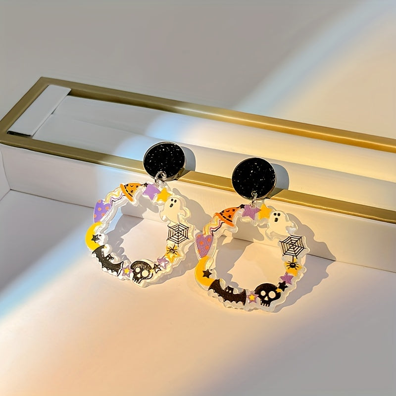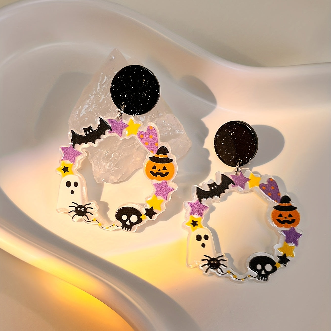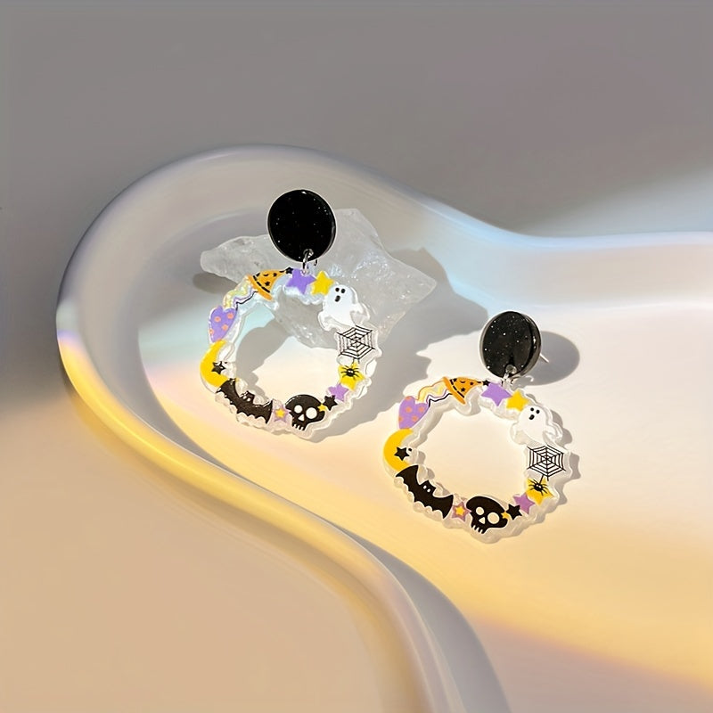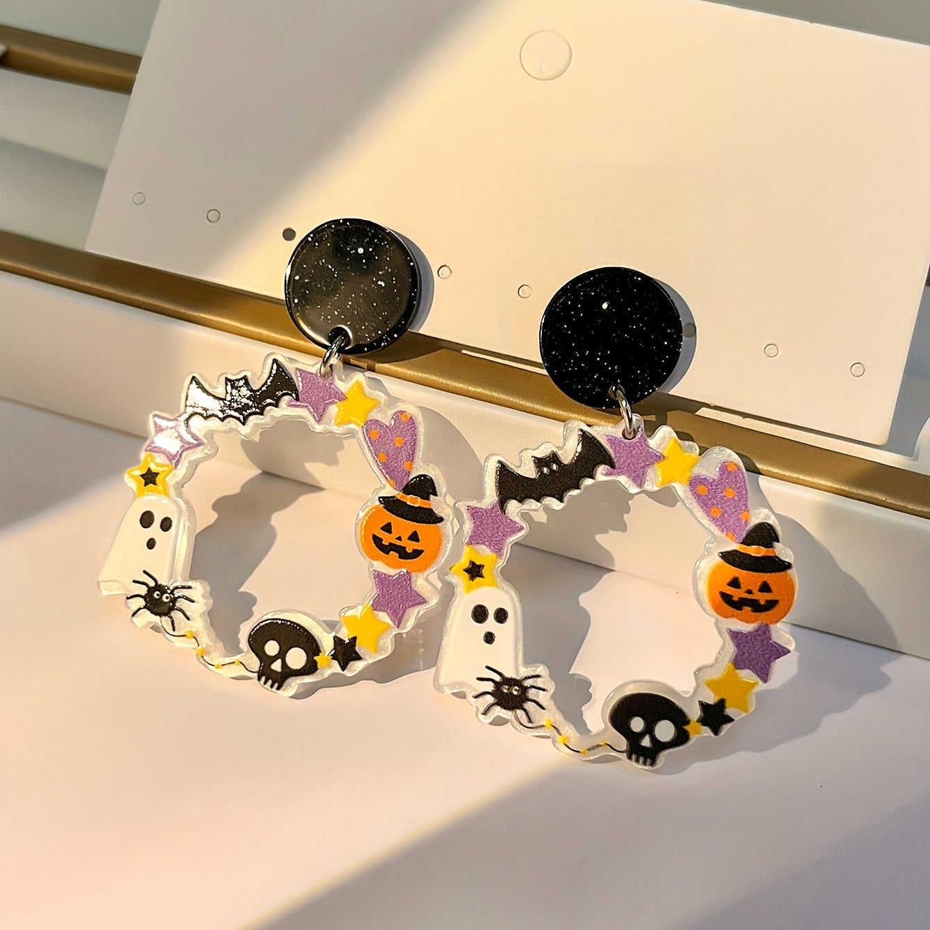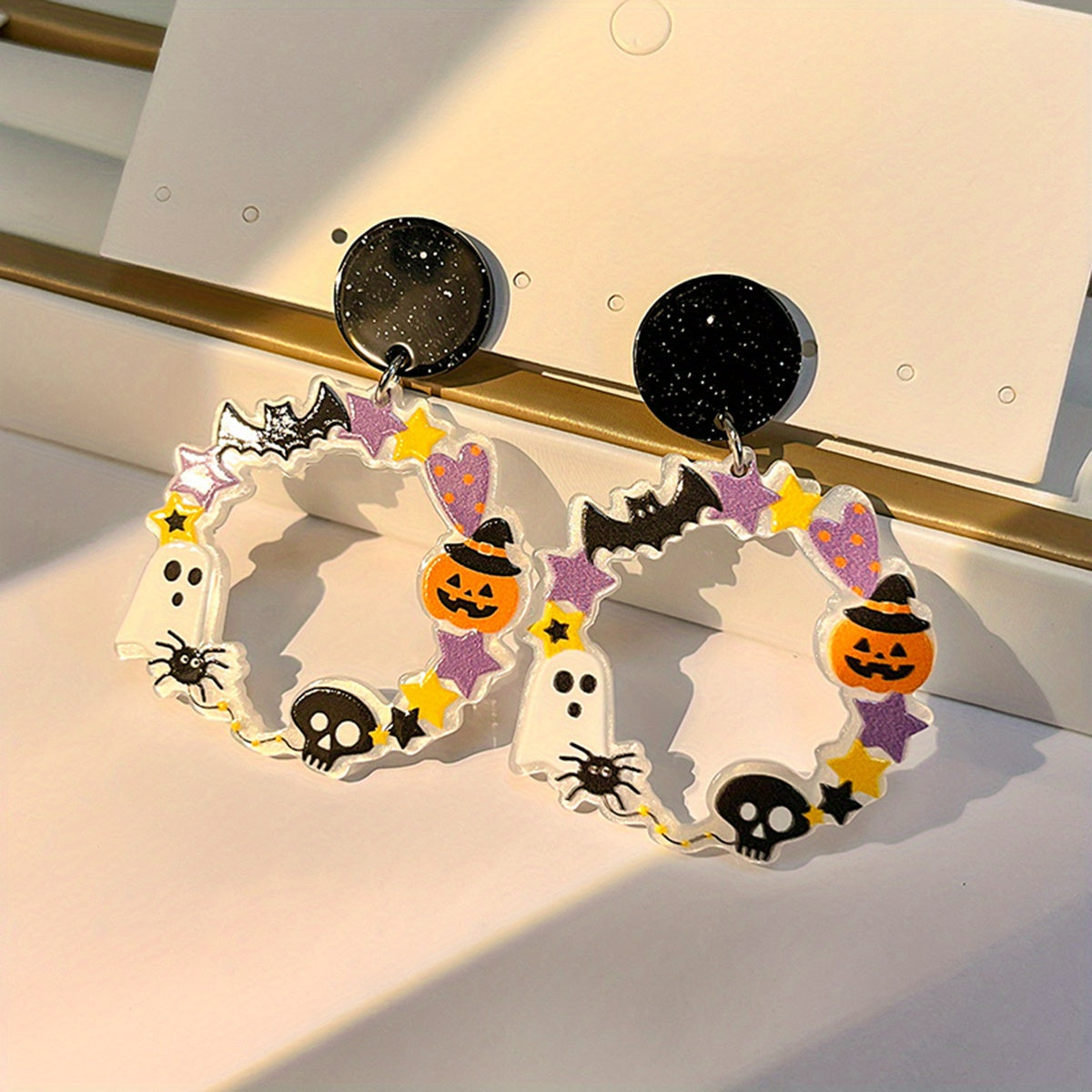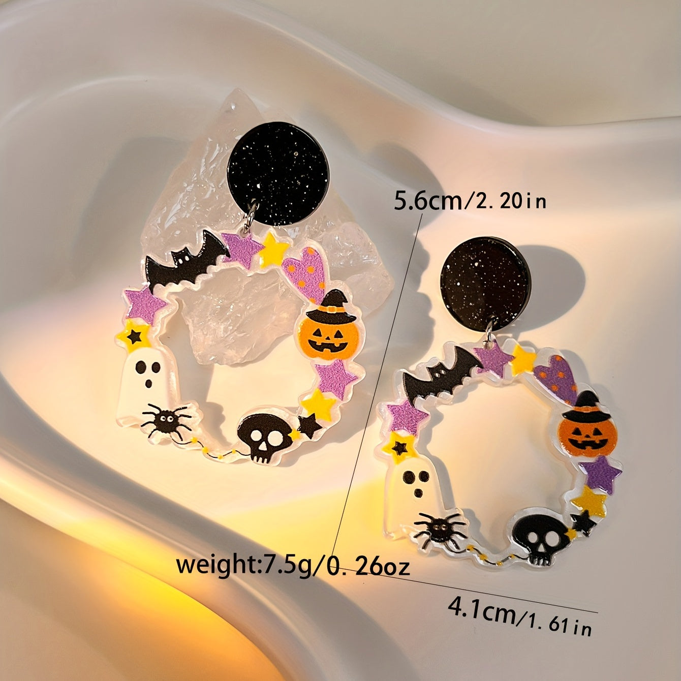 Add a spooky touch to your Halloween outfit with these creative pumpkin, ghost, and spider web decor garland dangle earrings. Perfect as a gift for females.