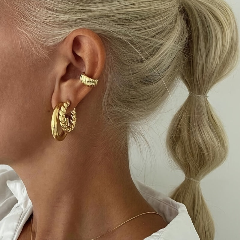 Add a stylish edge to your look with this 3-piece set of punk chunky hoop earrings. Made of 14K plated golden alloy, these round circle earrings are perfect for women's jewelry collection.