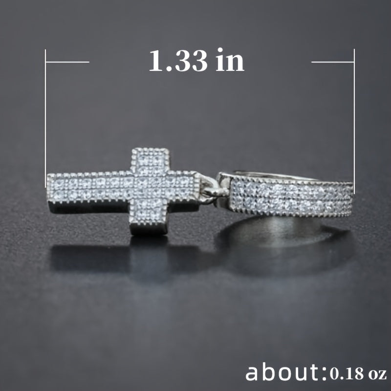 Add a touch of edgy style to your look with these punk-inspired cross dangle earrings featuring sparkling rhinestones. Perfect for men who want to stand out.