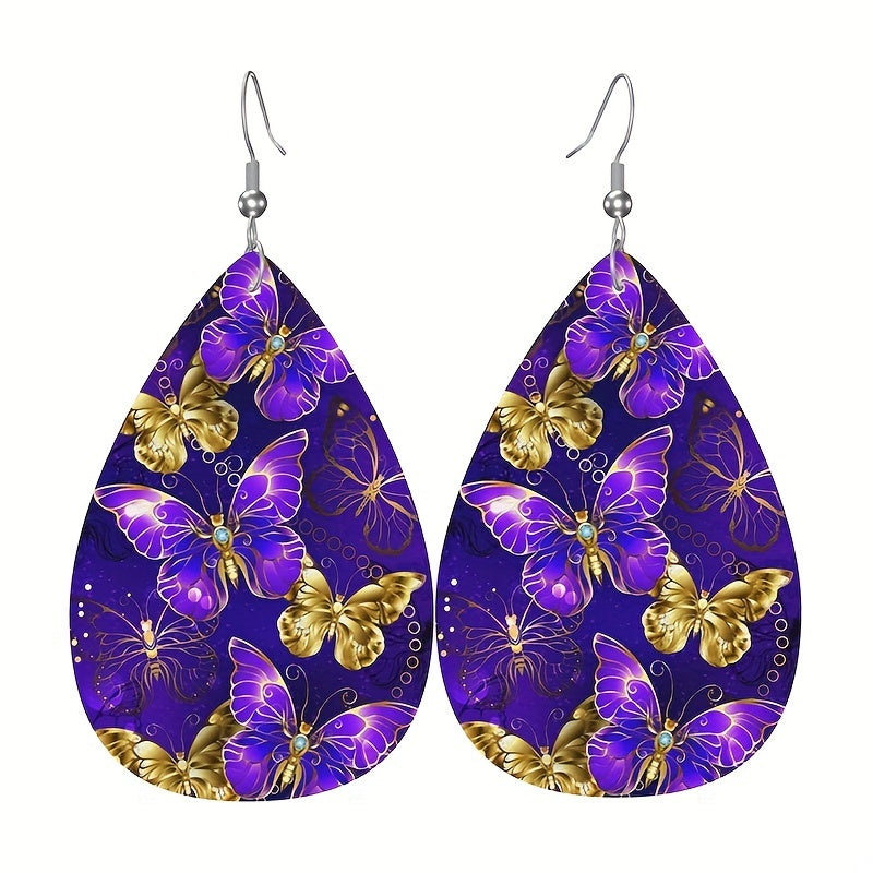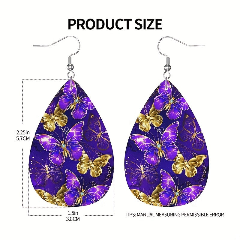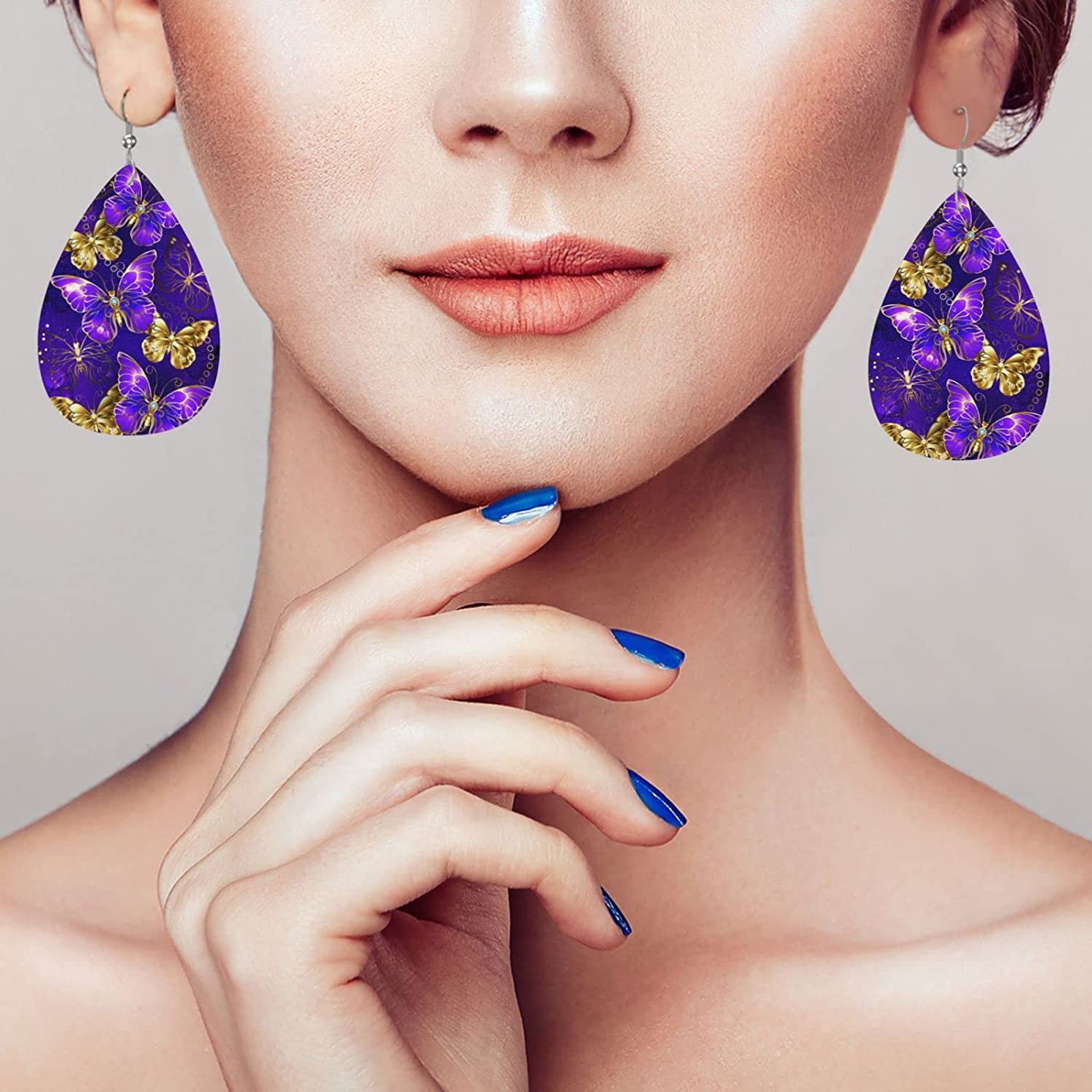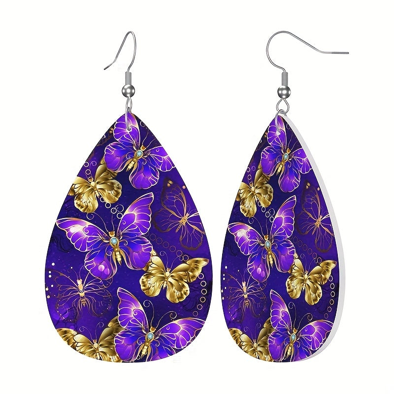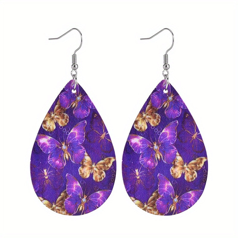 Add a pop of color to your look with these stylish purple butterfly earrings. They are made of faux leather and feature a teardrop design, perfect for parties and special occasions.