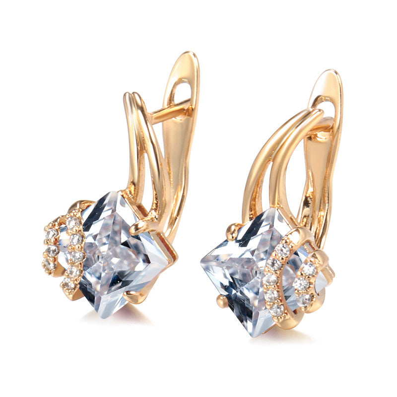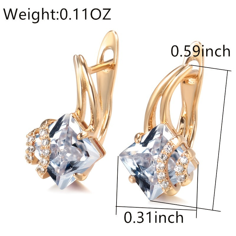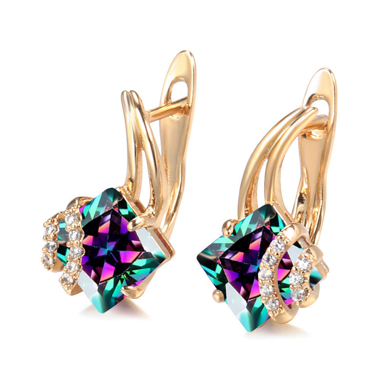 These stunning earrings feature multicolor square zircon stones that add a touch of elegance to your look. Perfect for weddings and special occasions.