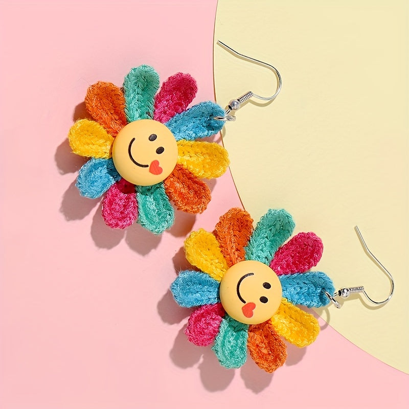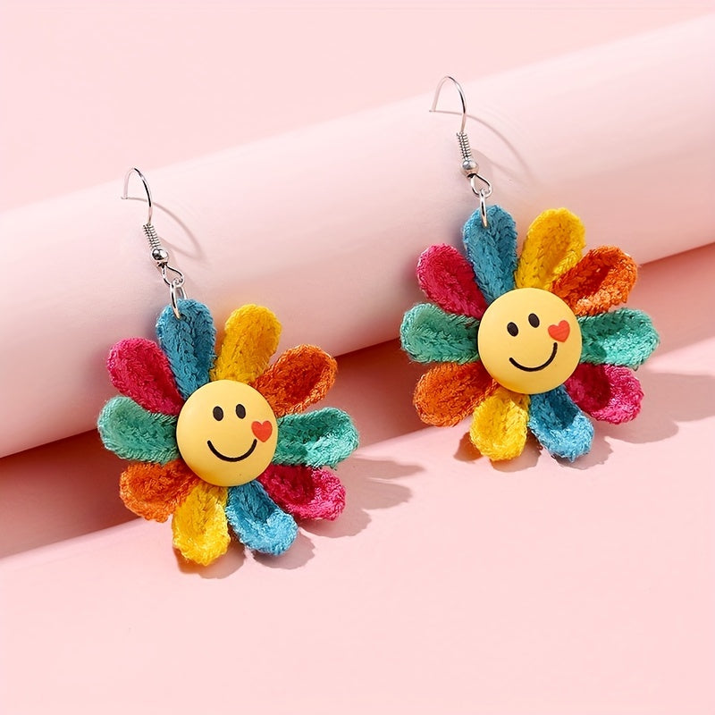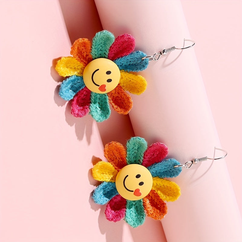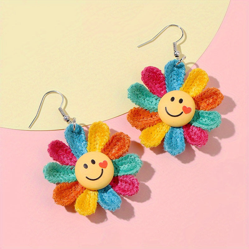 Rainbow Sunflower Smiling Face Dangle Earrings Delicate Gift Women Girls
