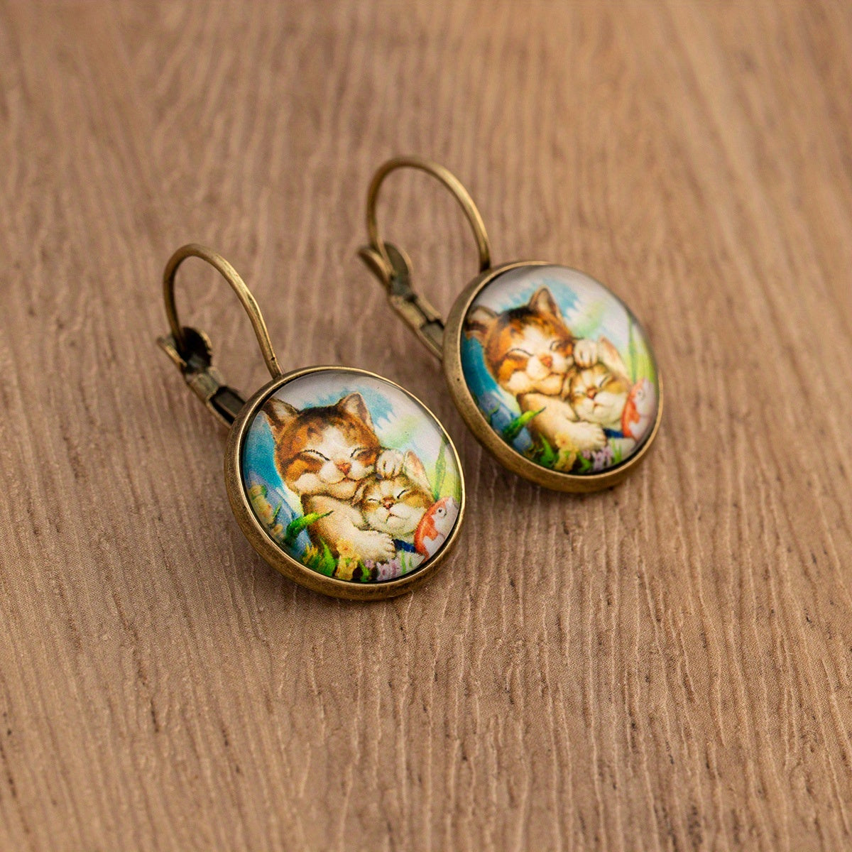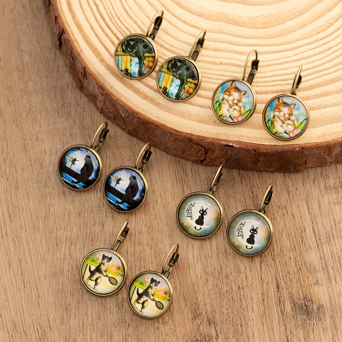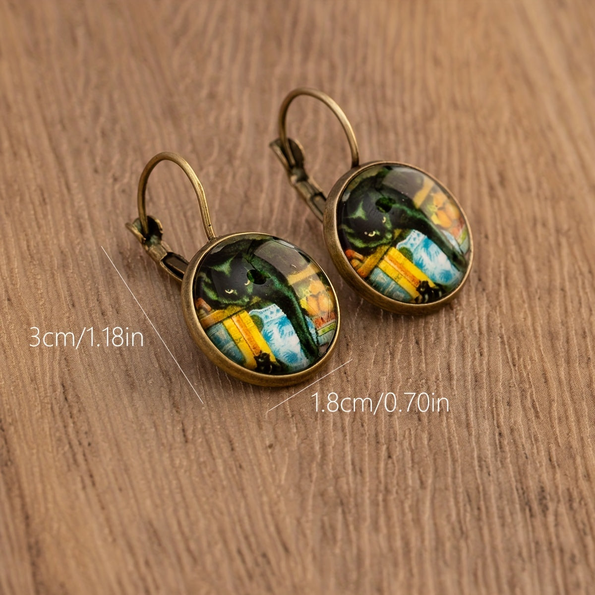 These cat print round dangle earrings are a perfect gift for women and girls. They are ideal for daily casual wear, adding a touch of retro charm to any outfit.