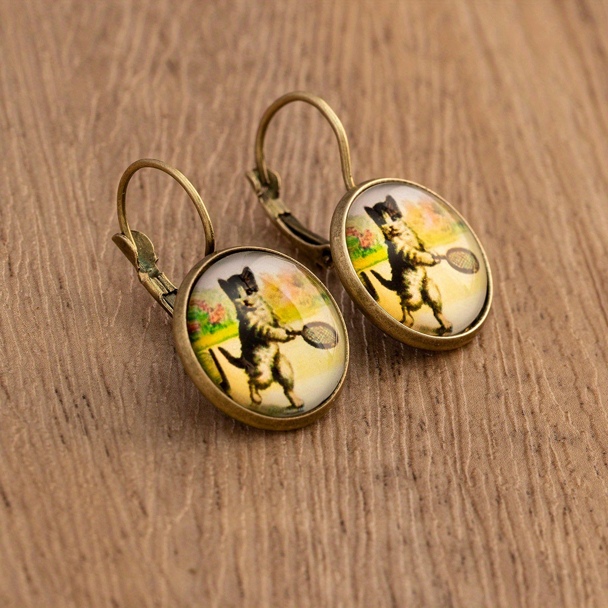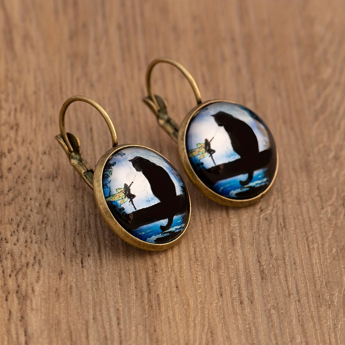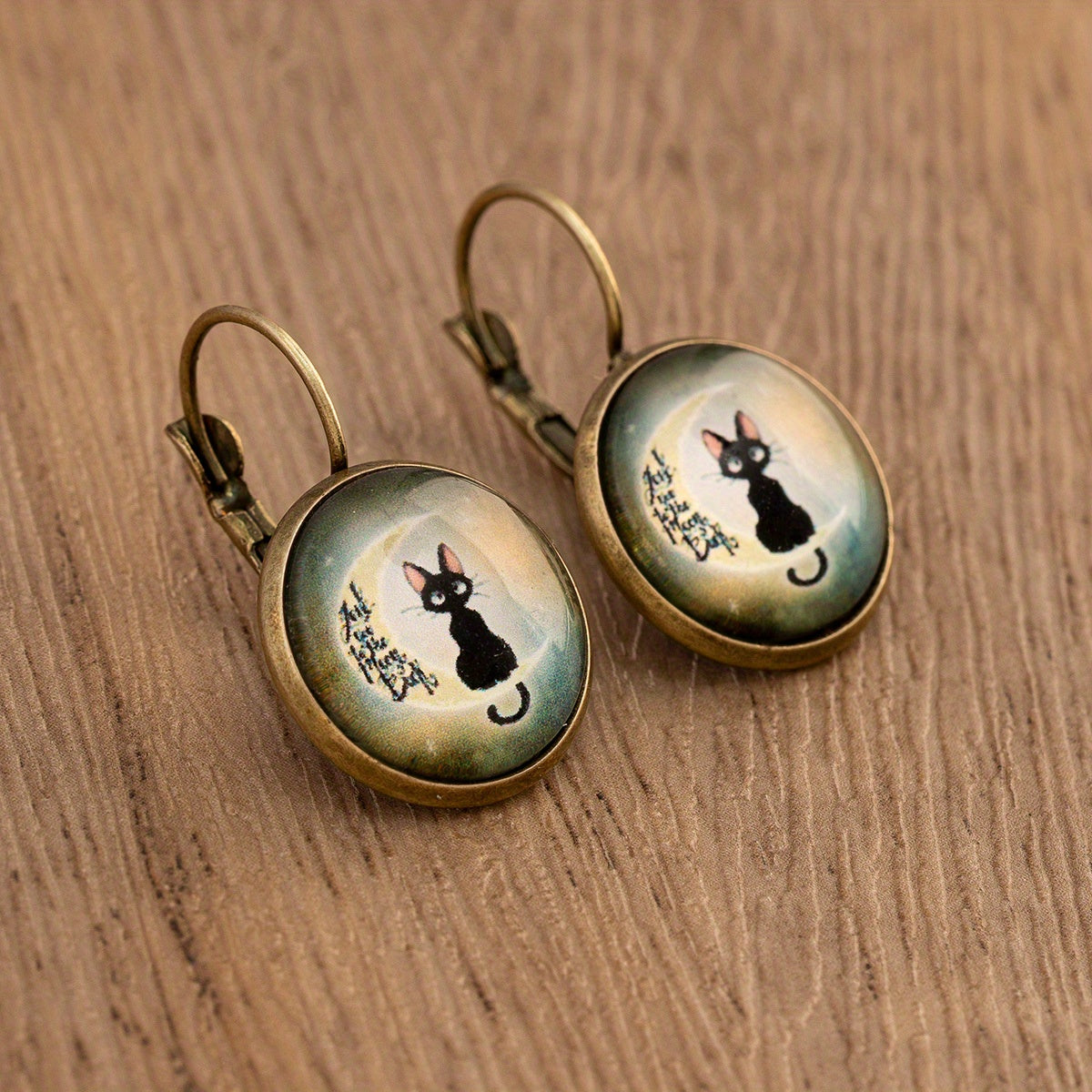These cat print round dangle earrings are a perfect gift for women and girls. They are ideal for daily casual wear, adding a touch of retro charm to any outfit.
