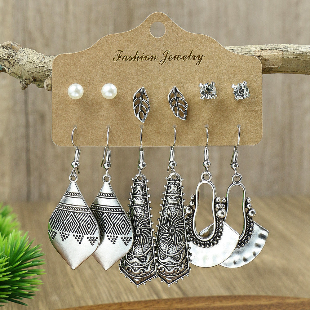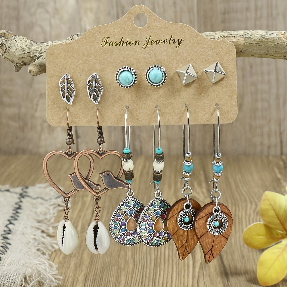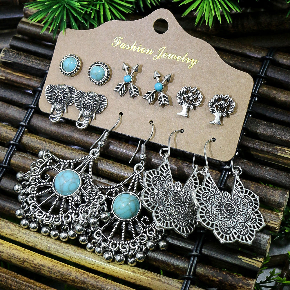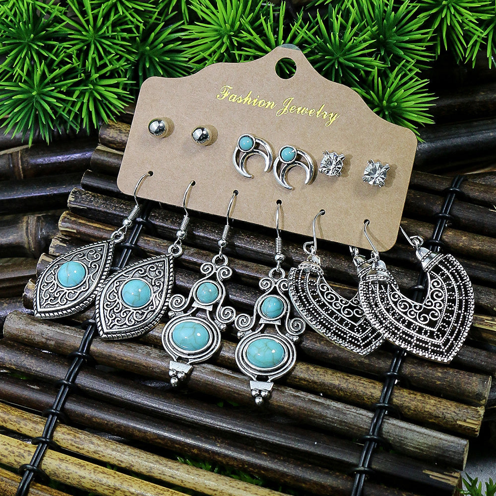 Retro Style Women's Earrings, Set of 42 Pairs, Turquoise Geometric Design