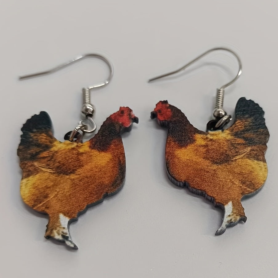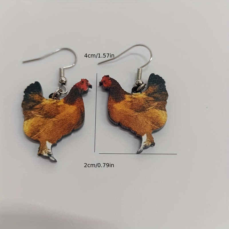 Adorn your ears with these charming farm animal earrings featuring a rooster, hen, and chicken design. Perfect for women and girls who love whimsical jewelry.