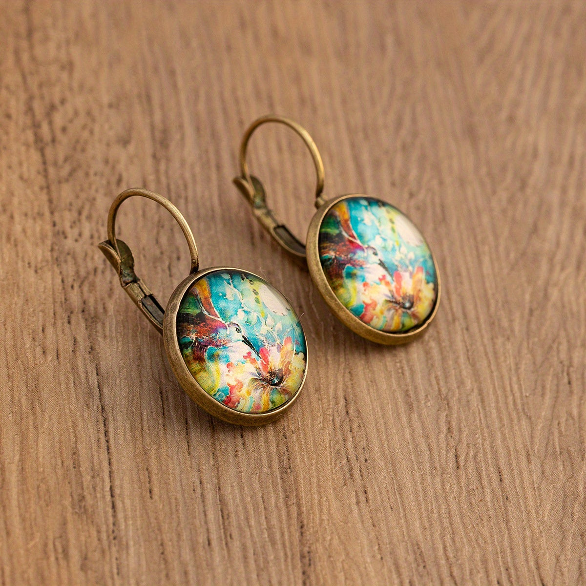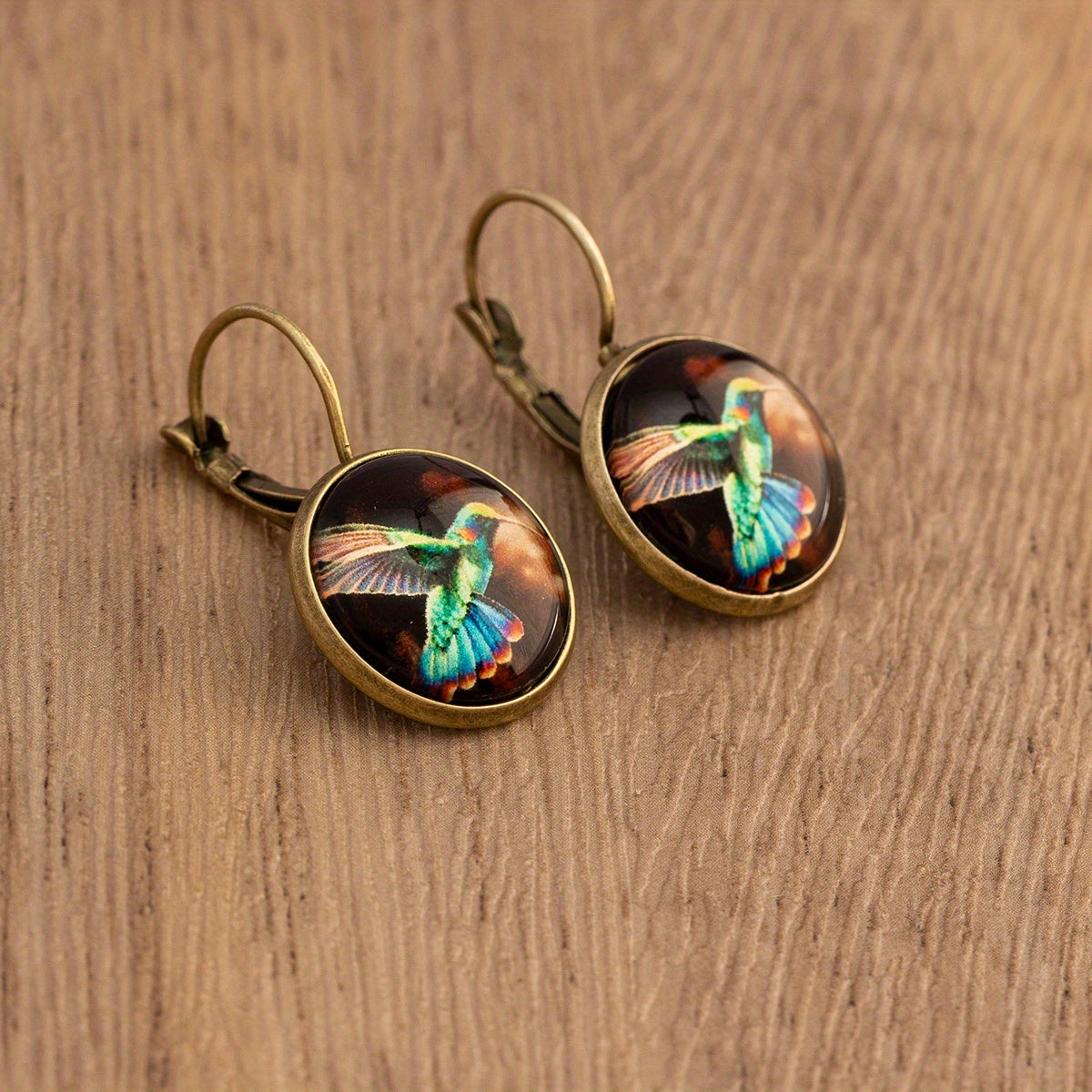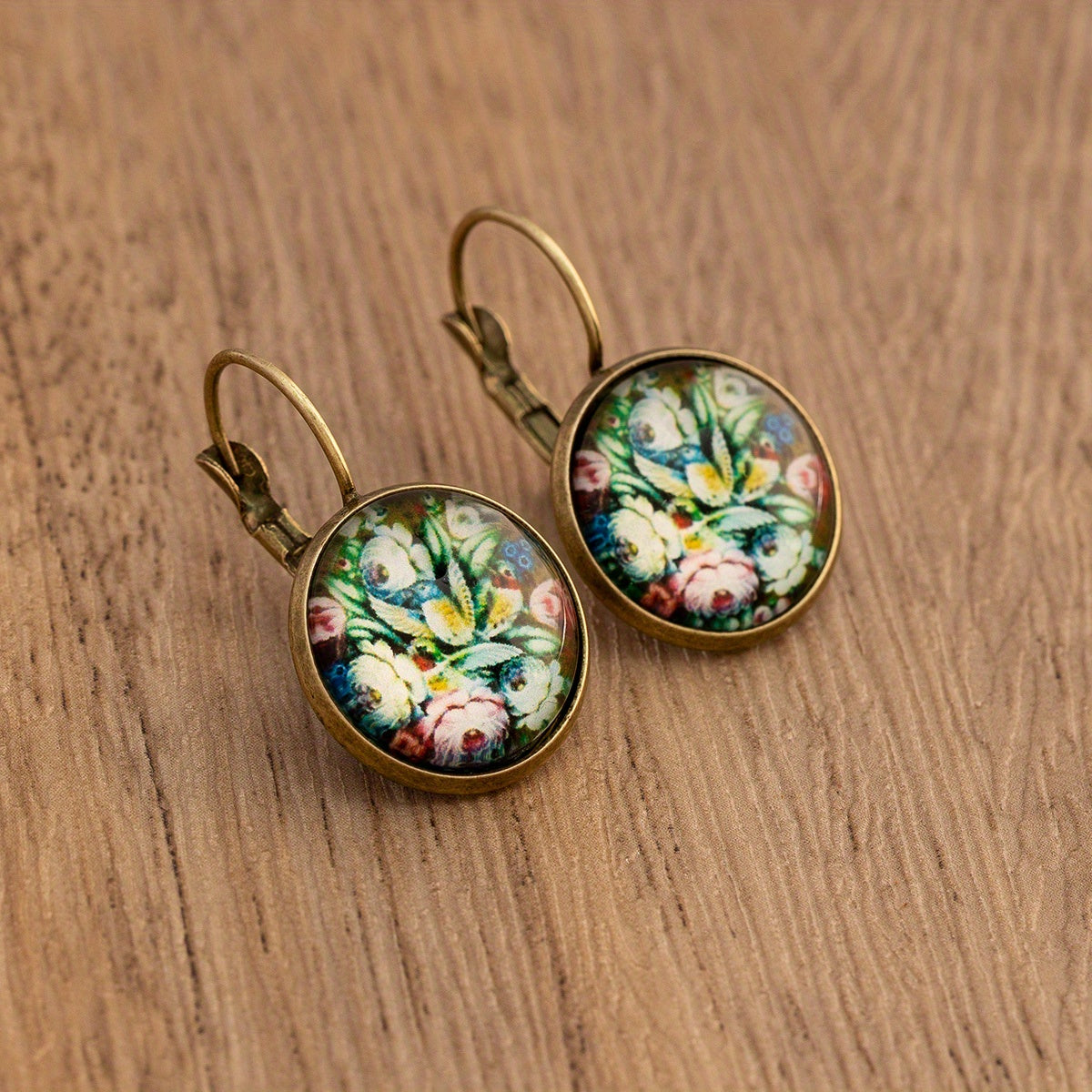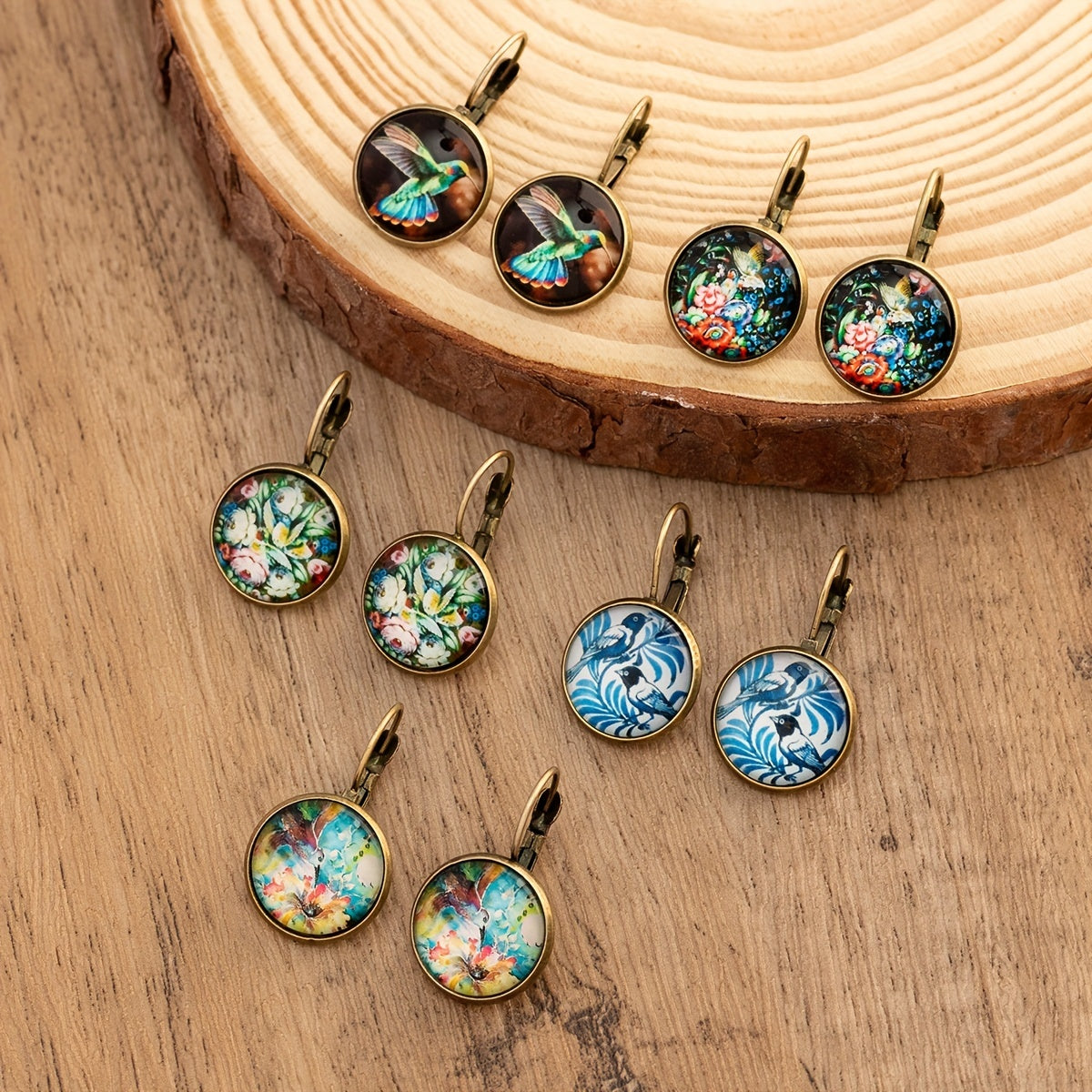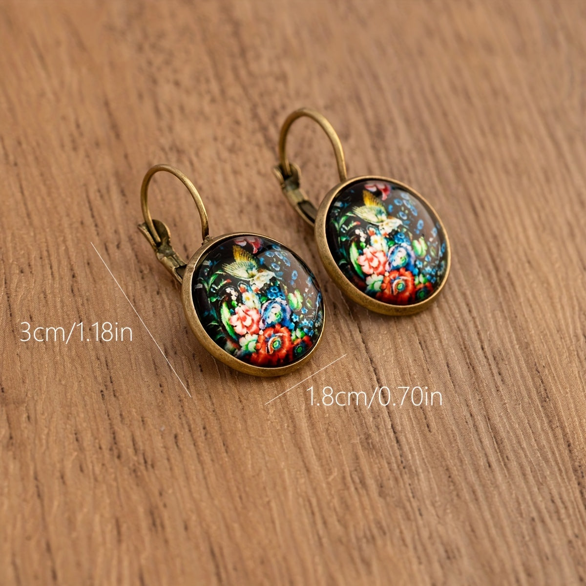 Rose Flower Bird Round Dangle Earrings Retro Copper Jewelry Gift