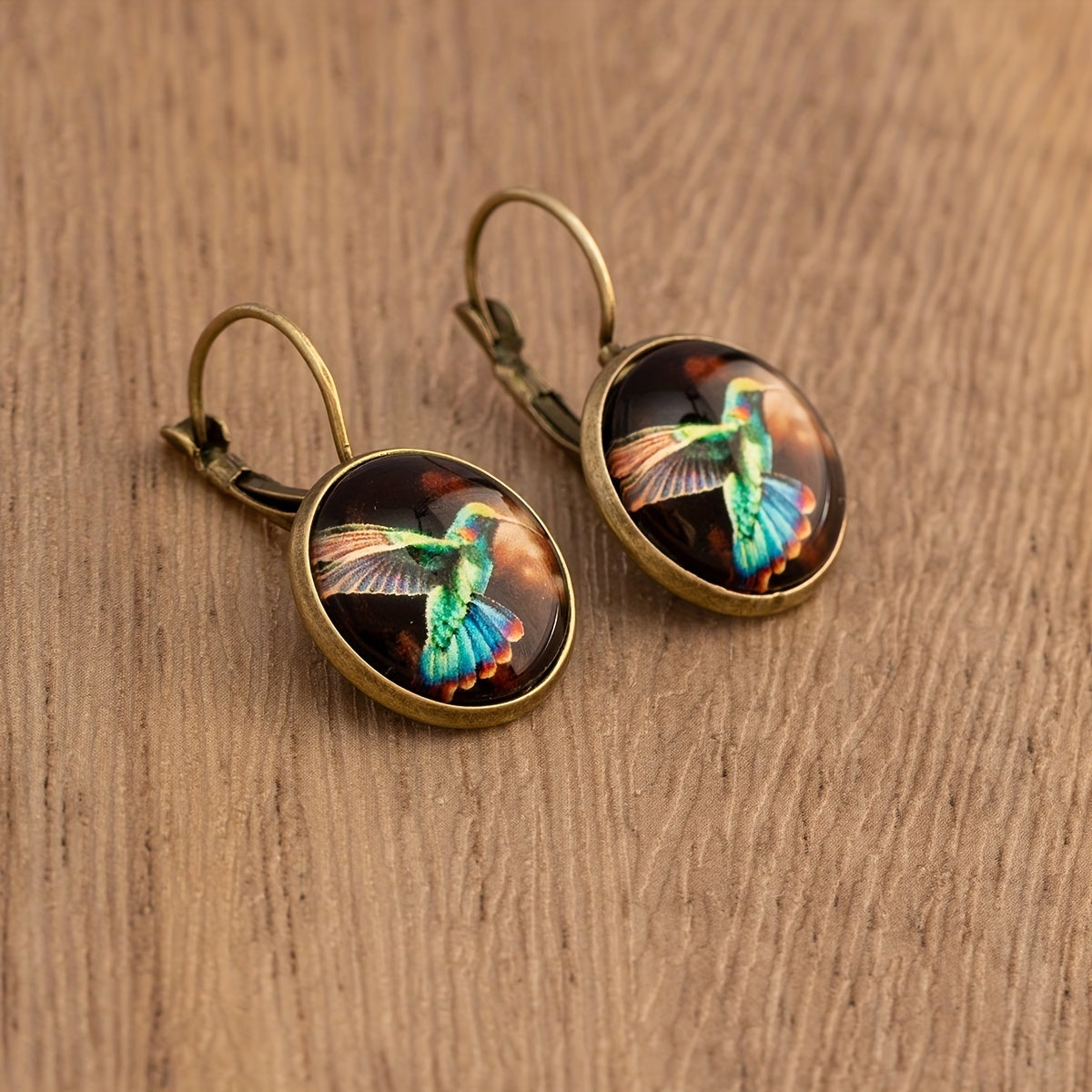 These delicate dangle earrings feature a beautiful rose flower and bird pattern. Made from retro copper, they make a perfect gift for women and girls.