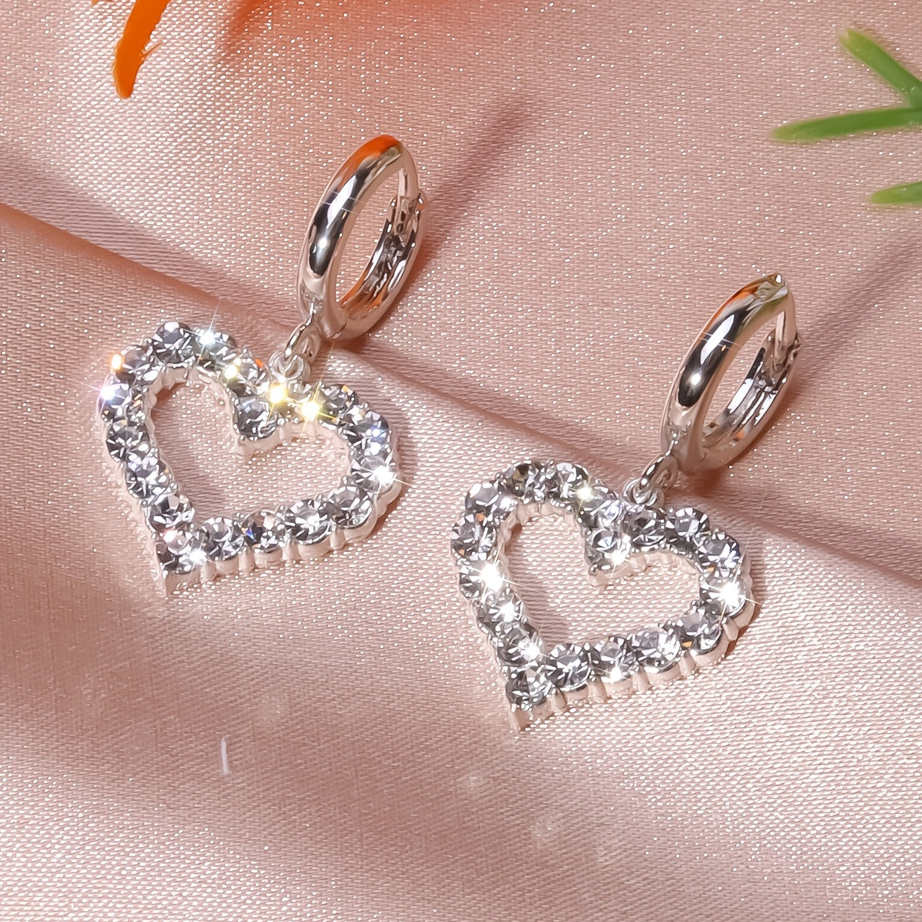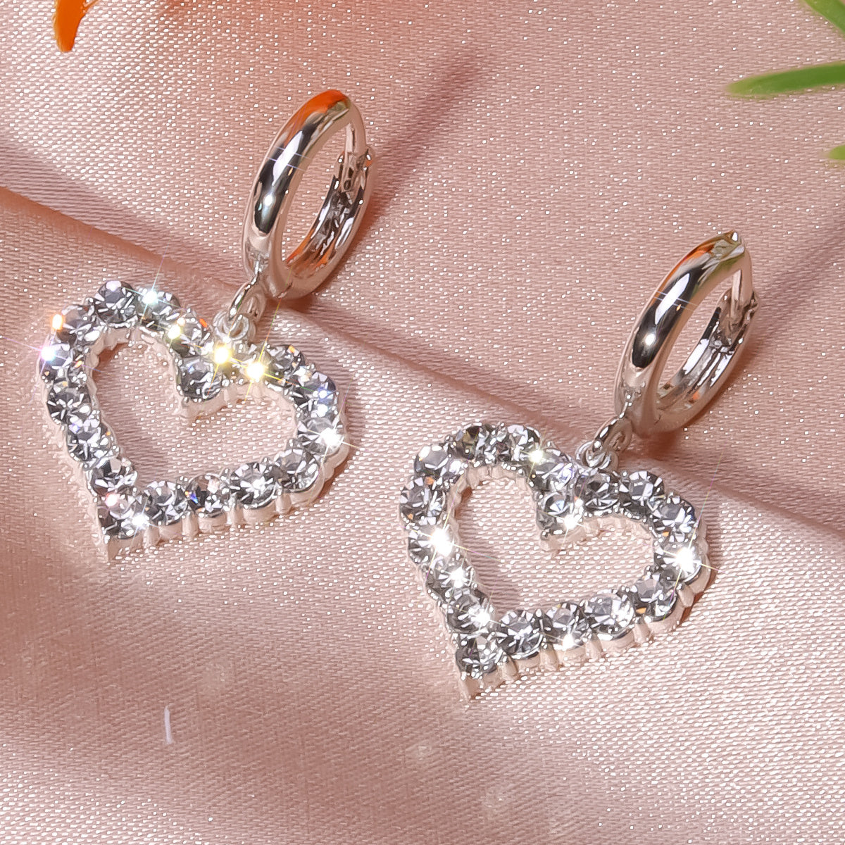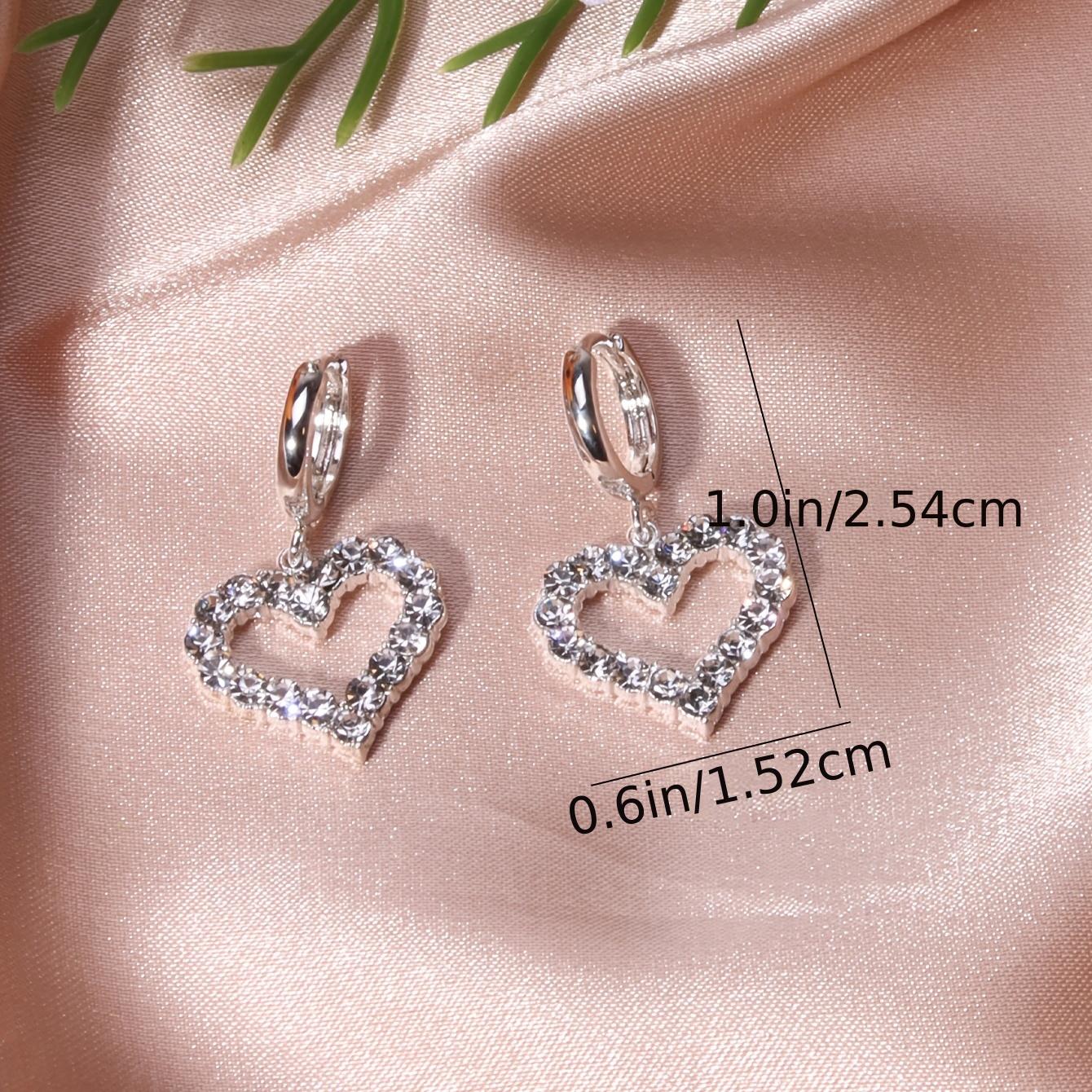 These elegant drop hoop earrings feature a hollow heart shape with full rhinestone embellishments. Perfect for women and girls as a delicate Valentine's Day decoration.