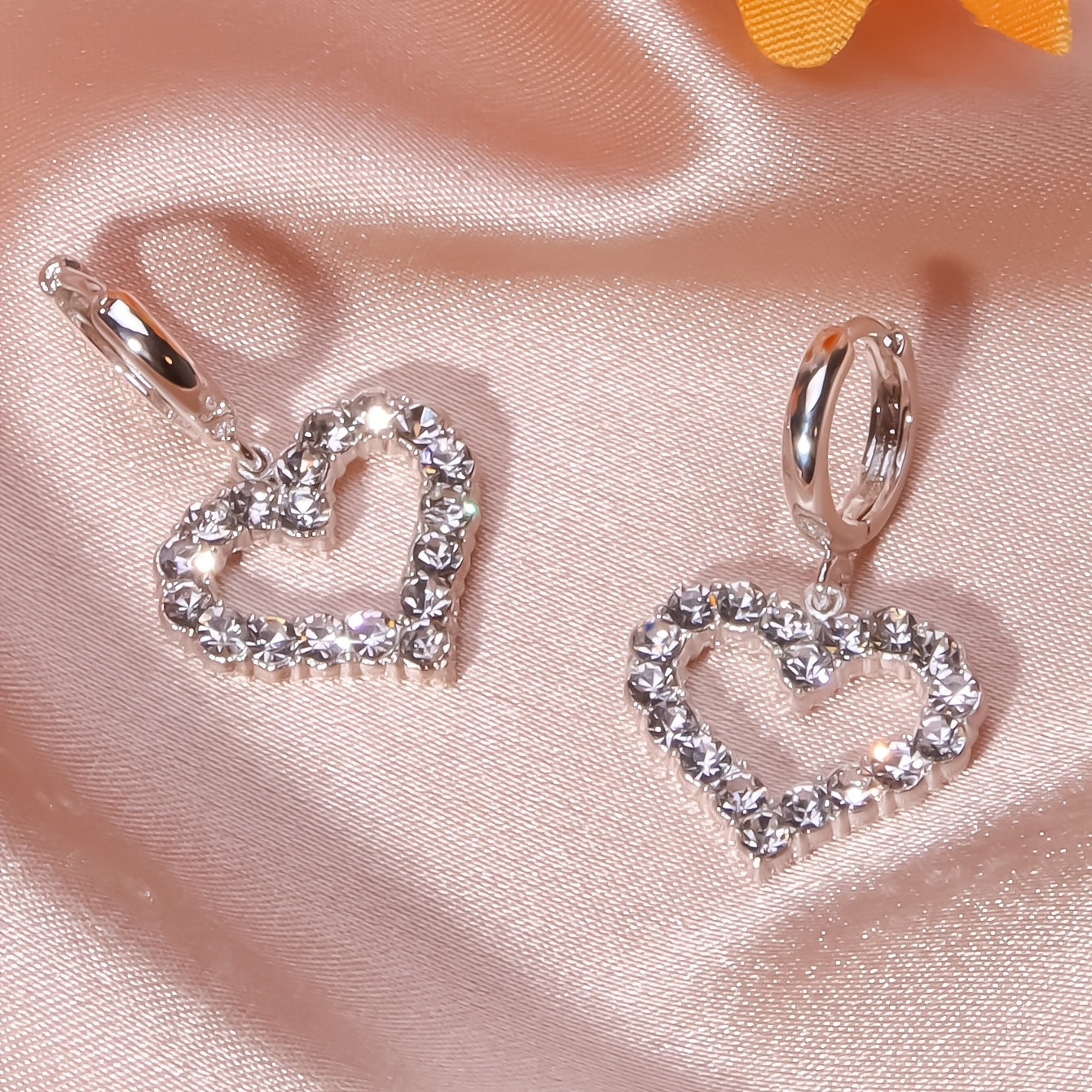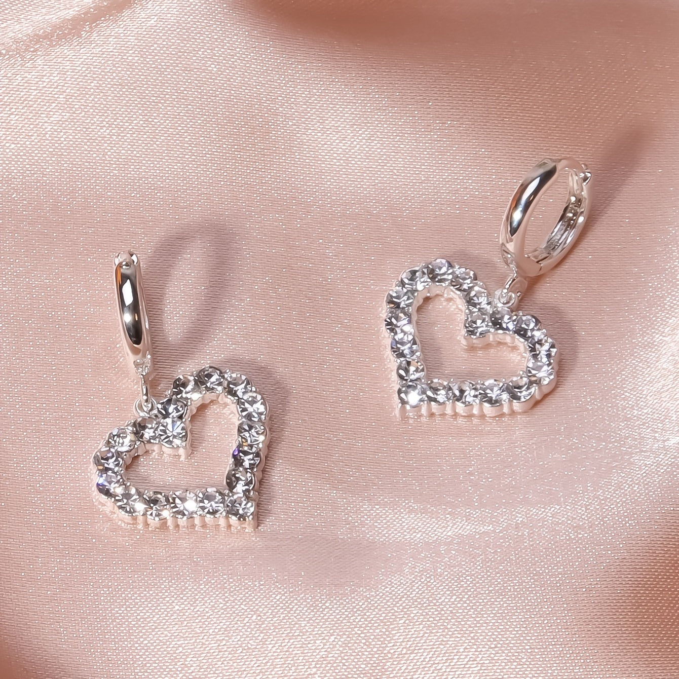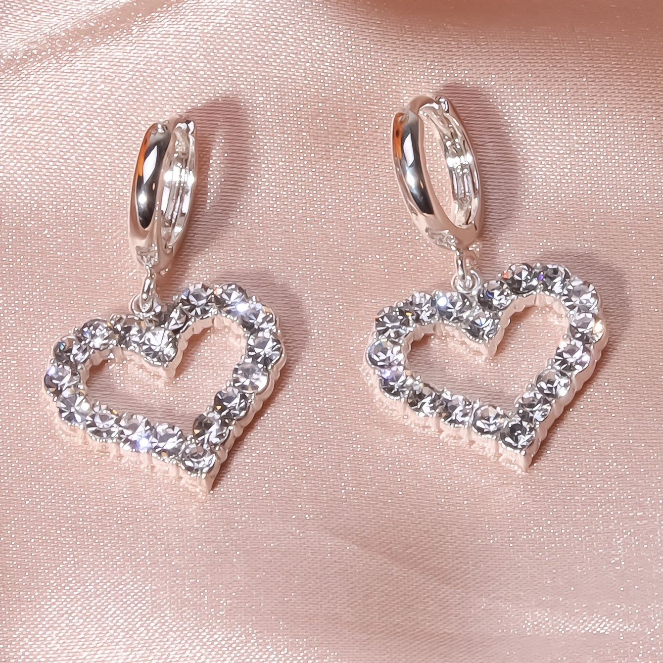 These elegant drop hoop earrings feature a hollow heart shape with full rhinestone embellishments. Perfect for women and girls as a delicate Valentine's Day decoration.