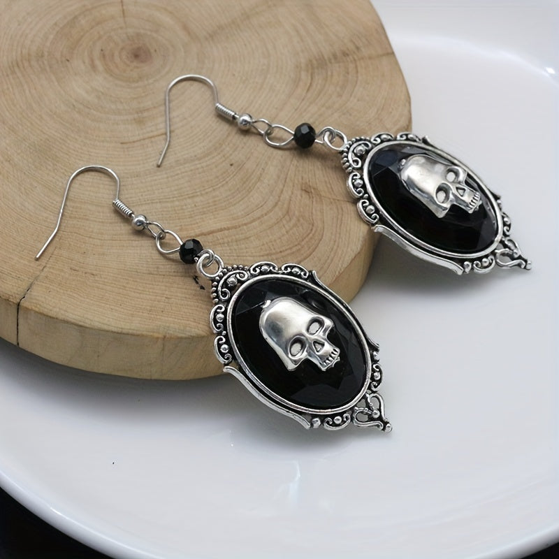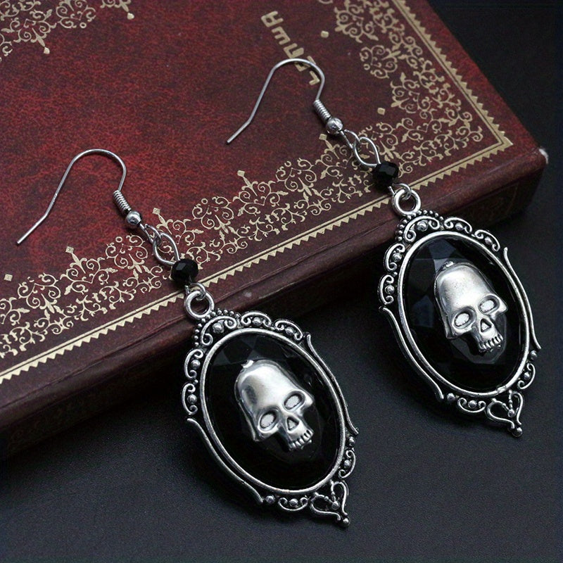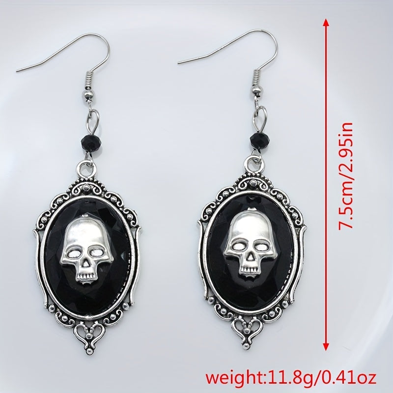 Skull Pattern Dangle Earrings Hip Hop Style Halloween Accessories