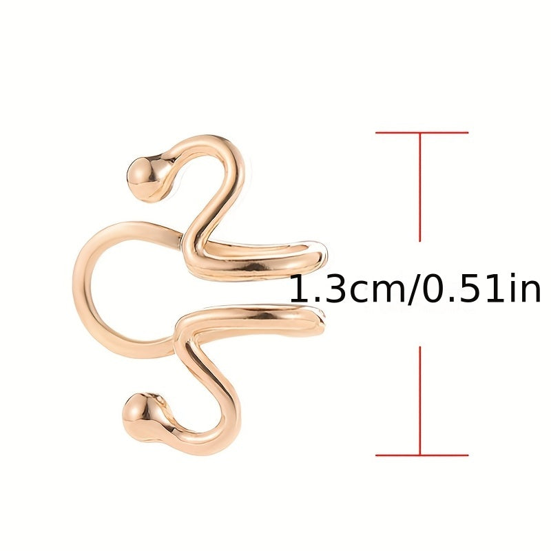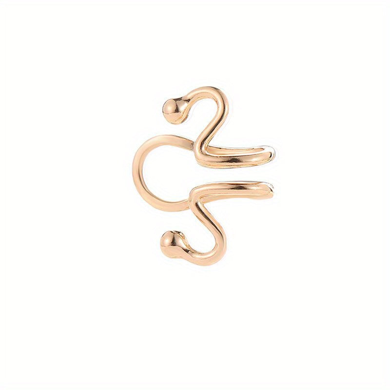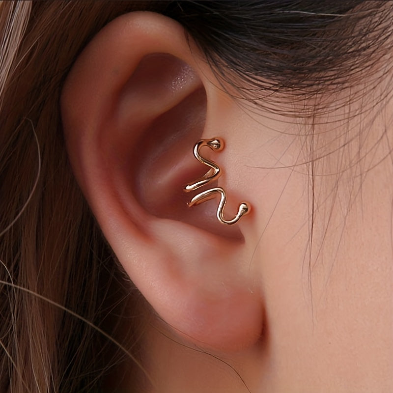 Elevate your look with this exaggerated snake ear cuff. Made from alloy with 14K plating, this delicate piece is perfect for a stylish and minimalist aesthetic. It makes a great gift for the fashion-forward woman in your life.