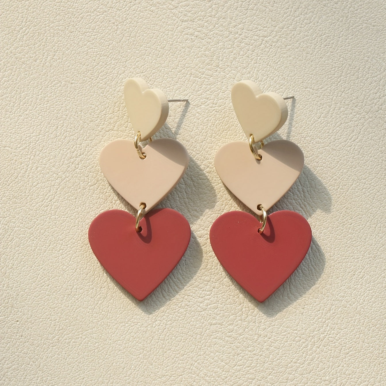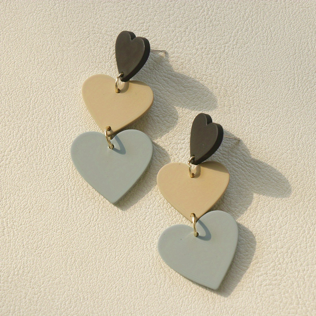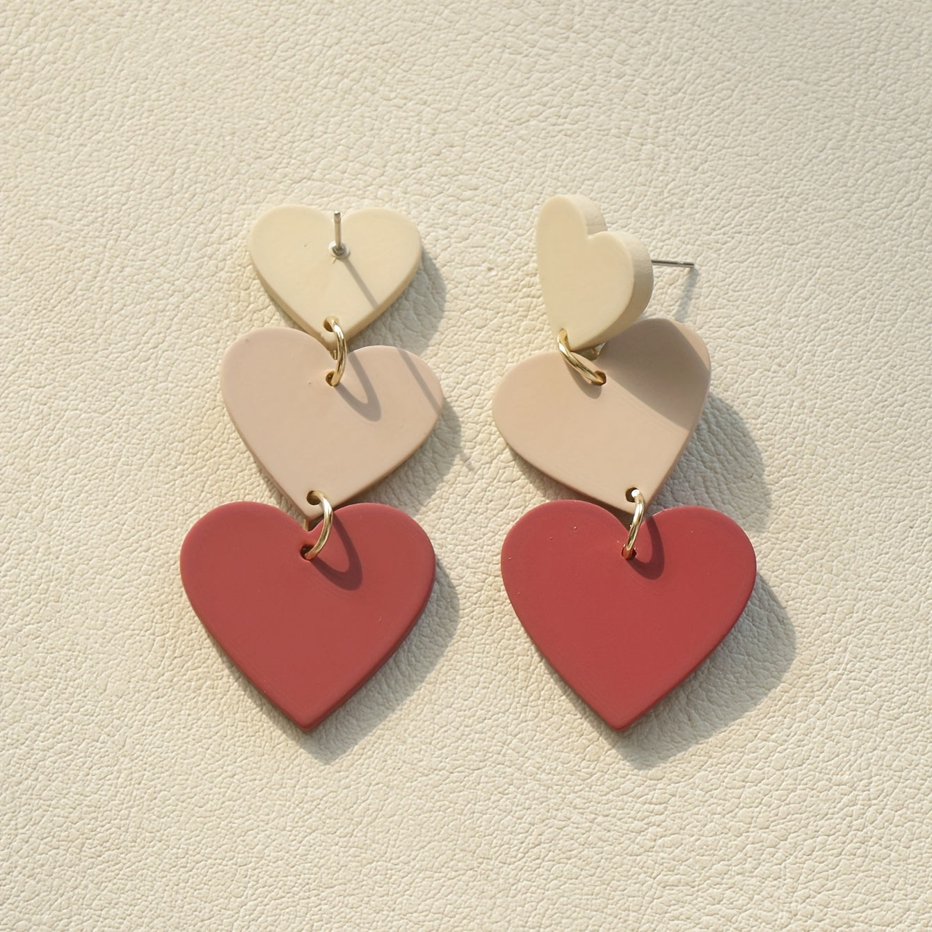 These 3 heart earrings are handmade from soft polymer clay with a textured design. They have a retro vocation style, making them a perfect gift for any occasion.