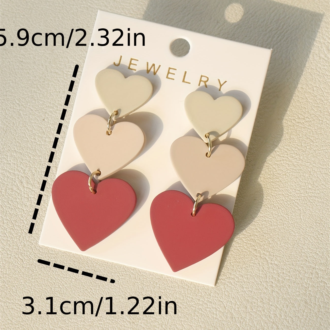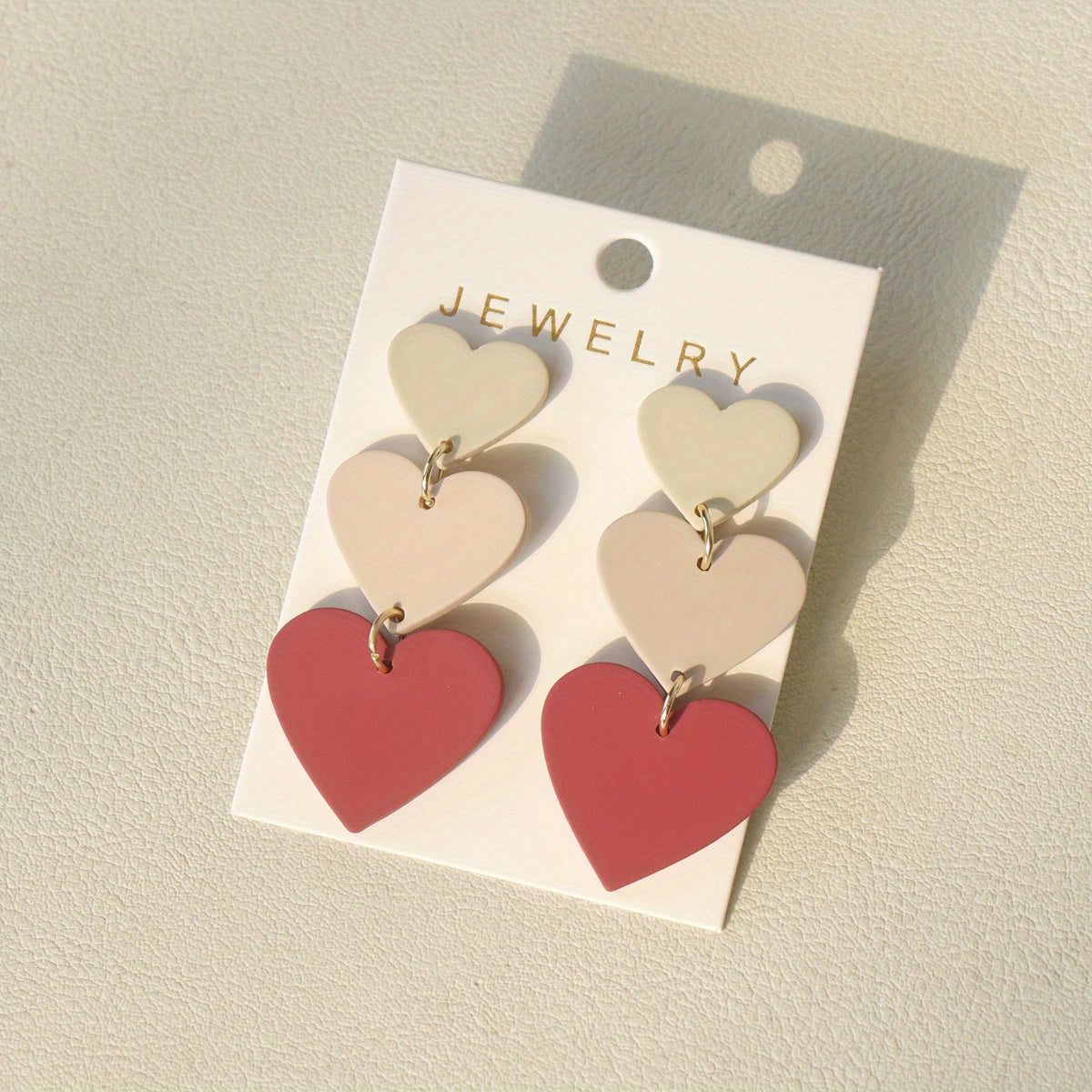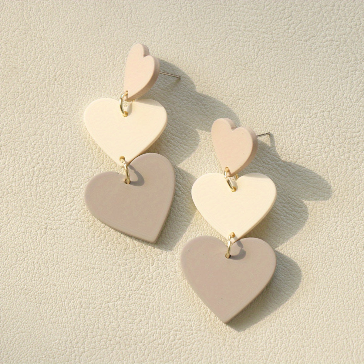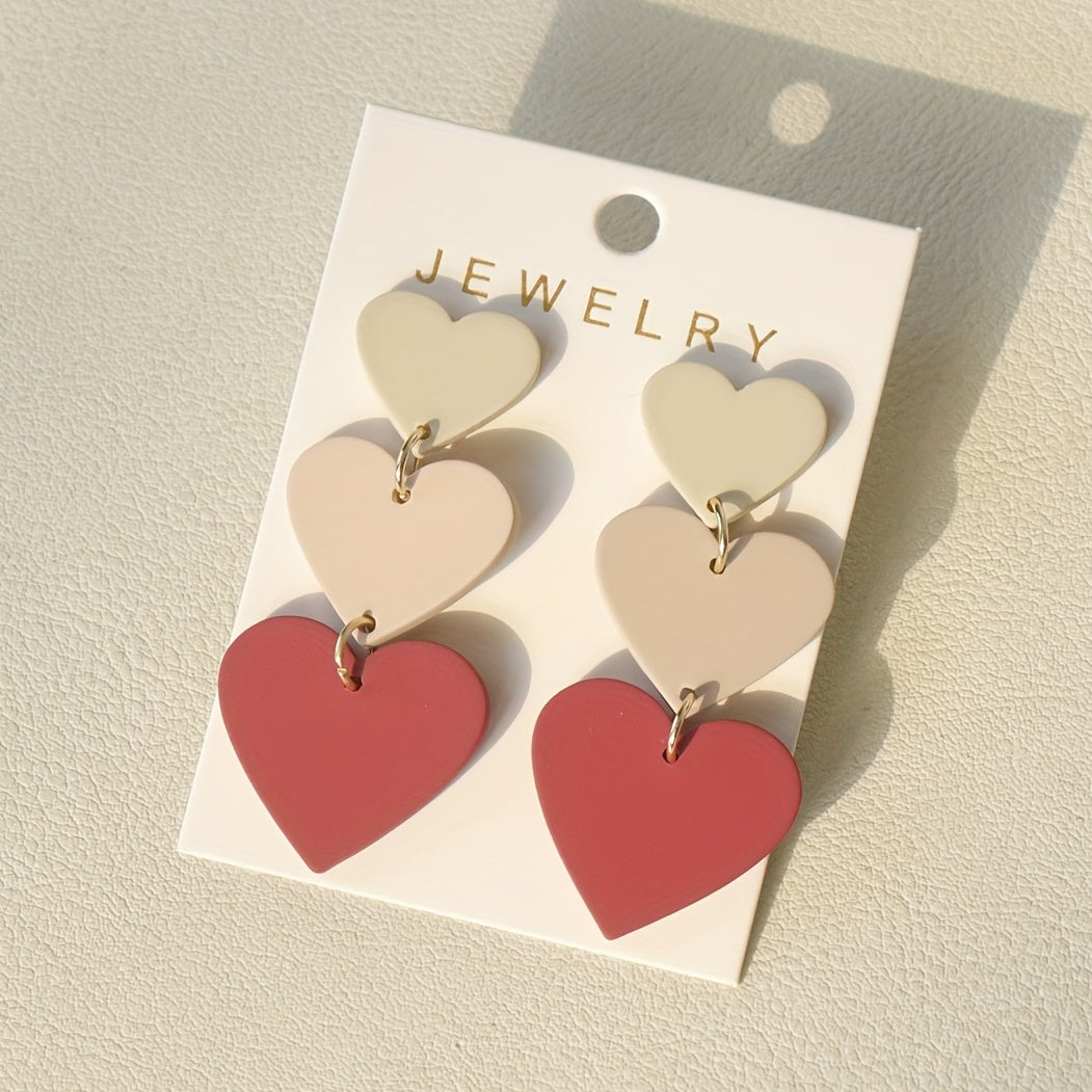 These 3 heart earrings are handmade from soft polymer clay with a textured design. They have a retro vocation style, making them a perfect gift for any occasion.