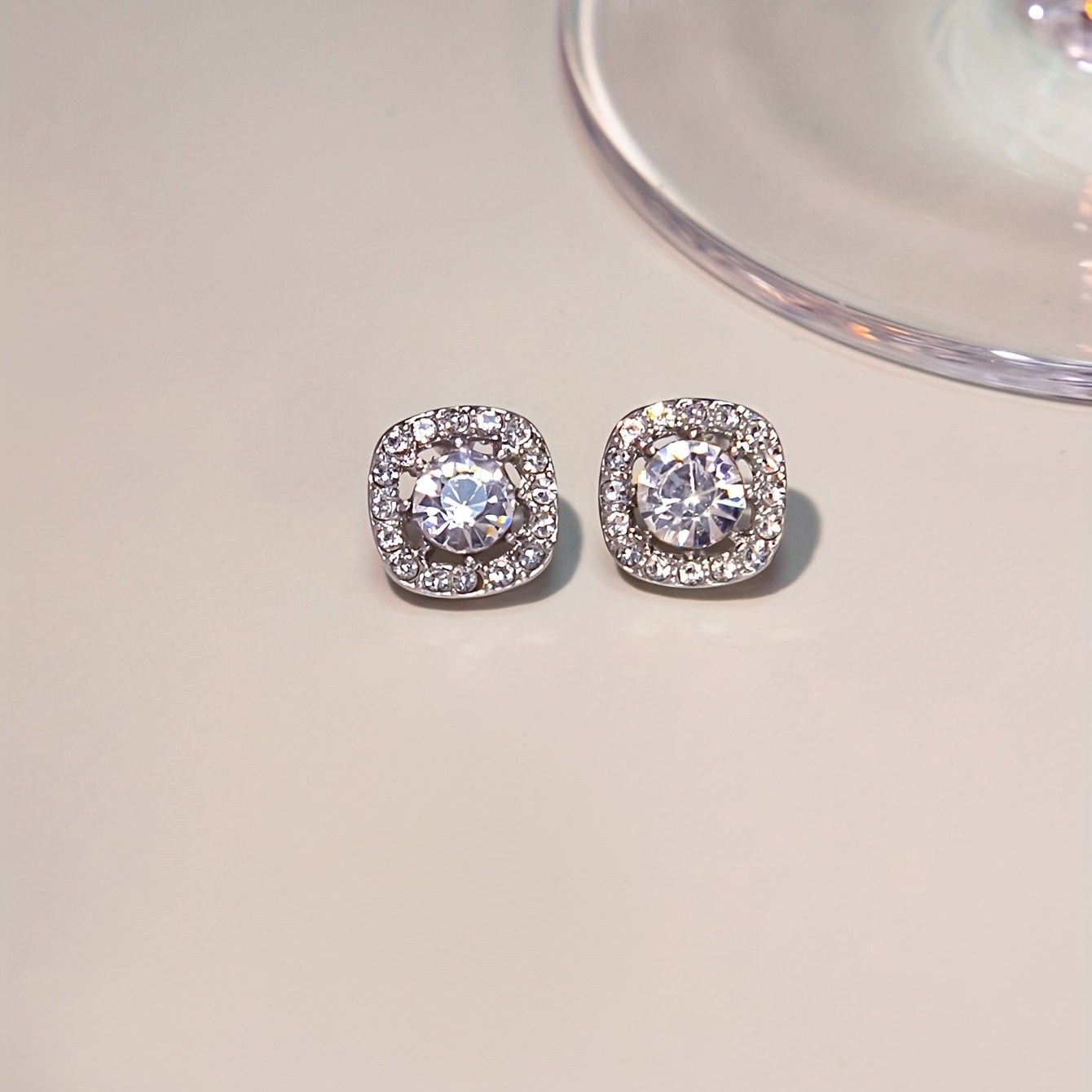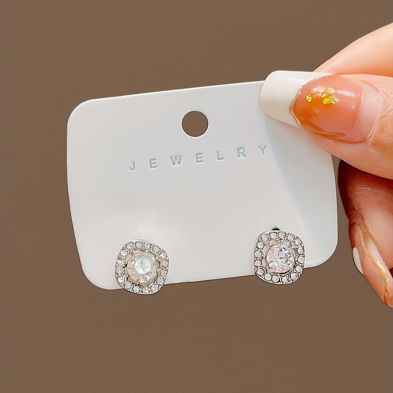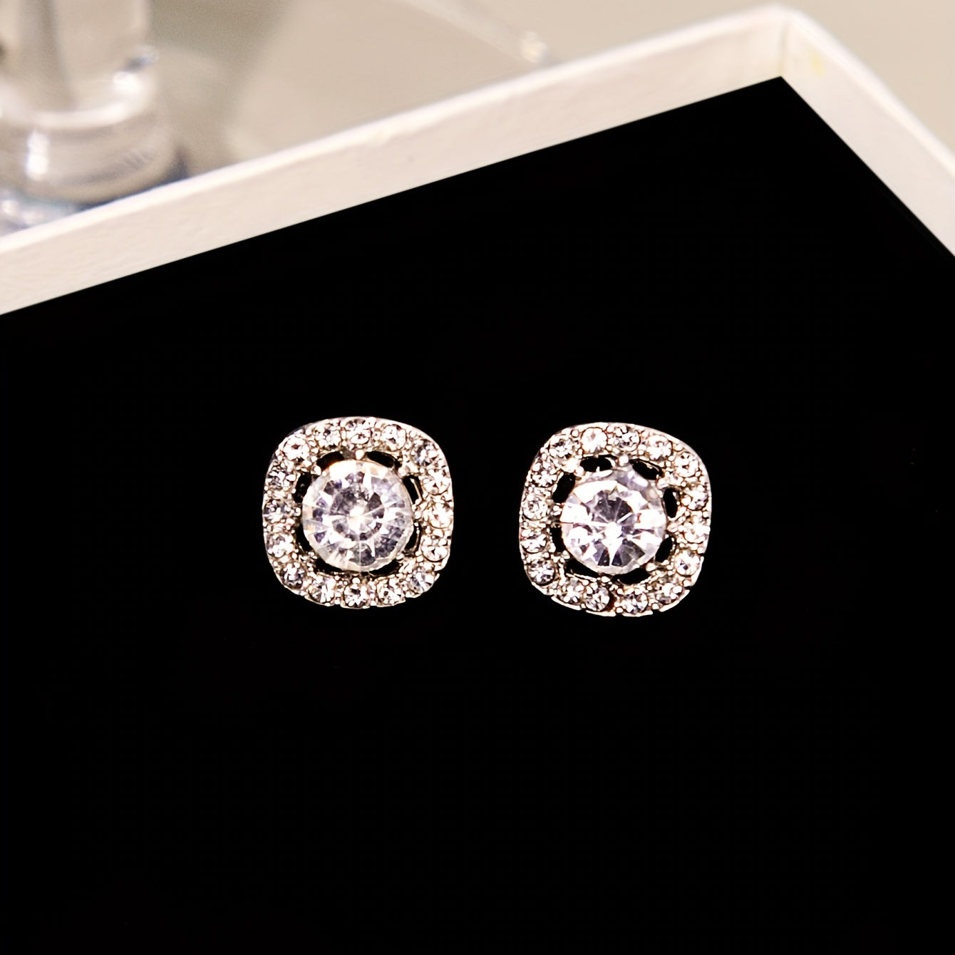 Add a touch of elegance with these square cut inlaid faux gemstone stud earrings. Perfect for everyday wear or special occasions.