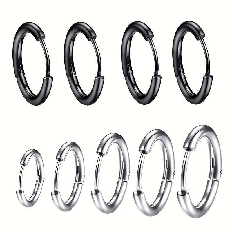 These stainless steel circle earrings are a classic accessory for cartilage piercing. They are silvery in color and make a great gift option.