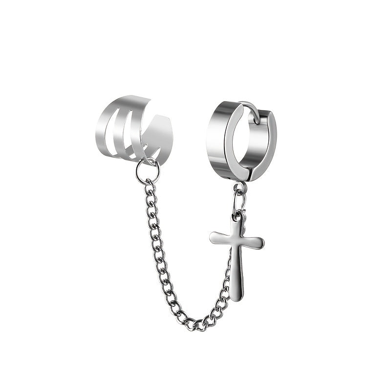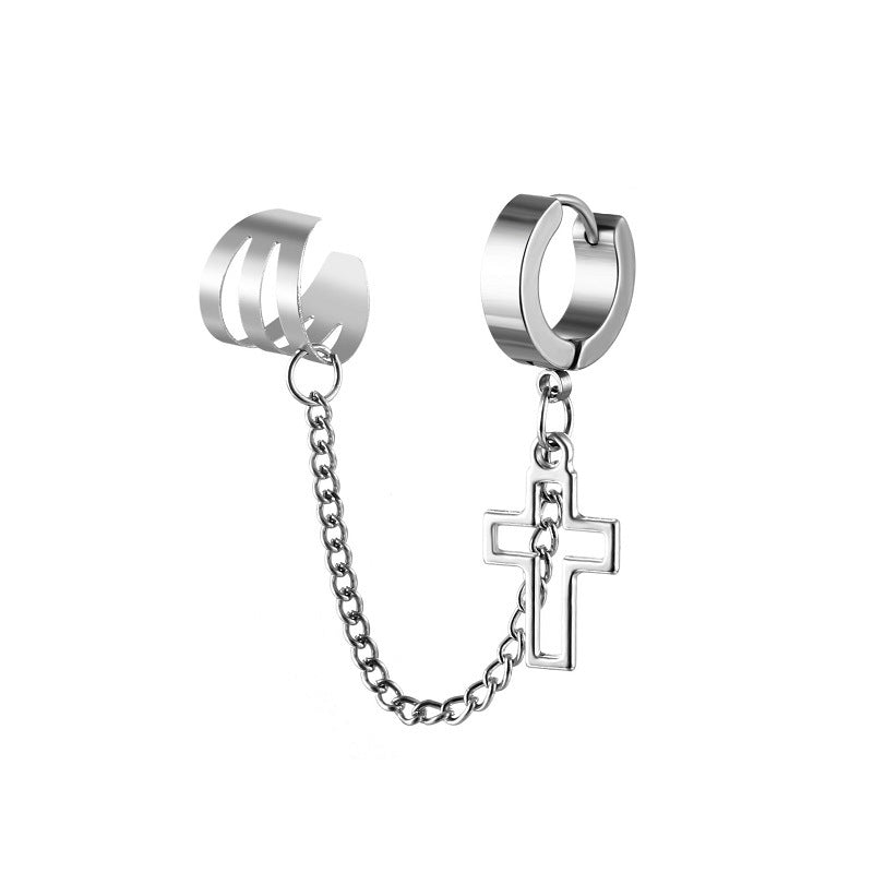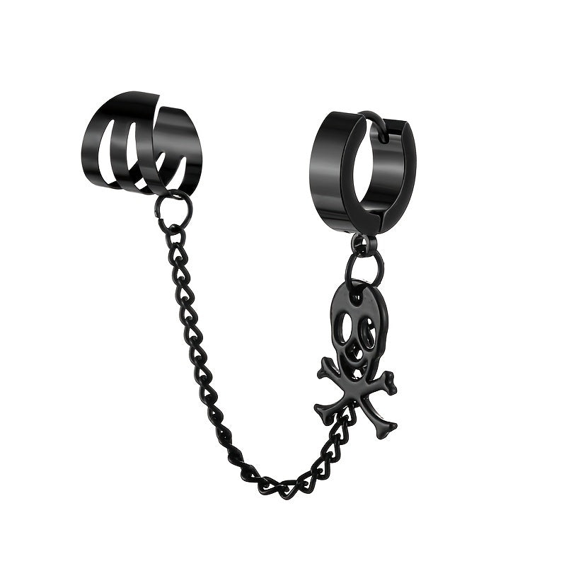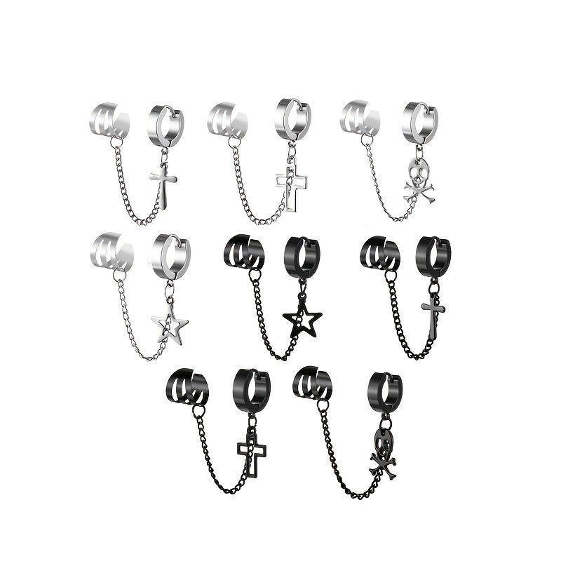 Add a touch of edgy cool to your look with these stainless steel ear cuff earrings featuring a cross, star, and skull design. Perfect for men and women who love bold accessories.