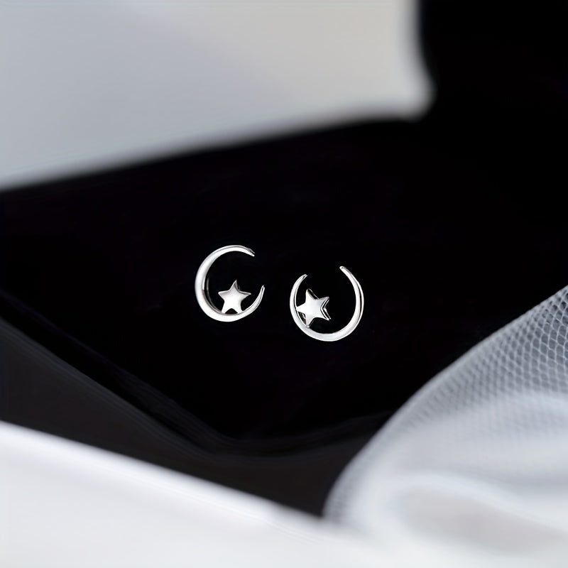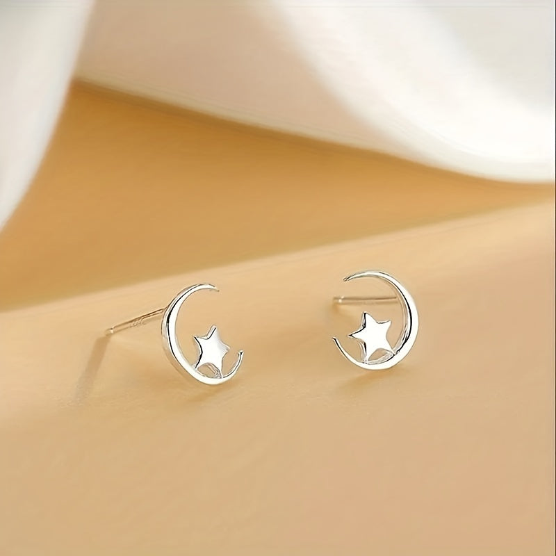 These elegant earrings feature a design of stars and moons, perfect for adding a touch of celestial charm to your look.
