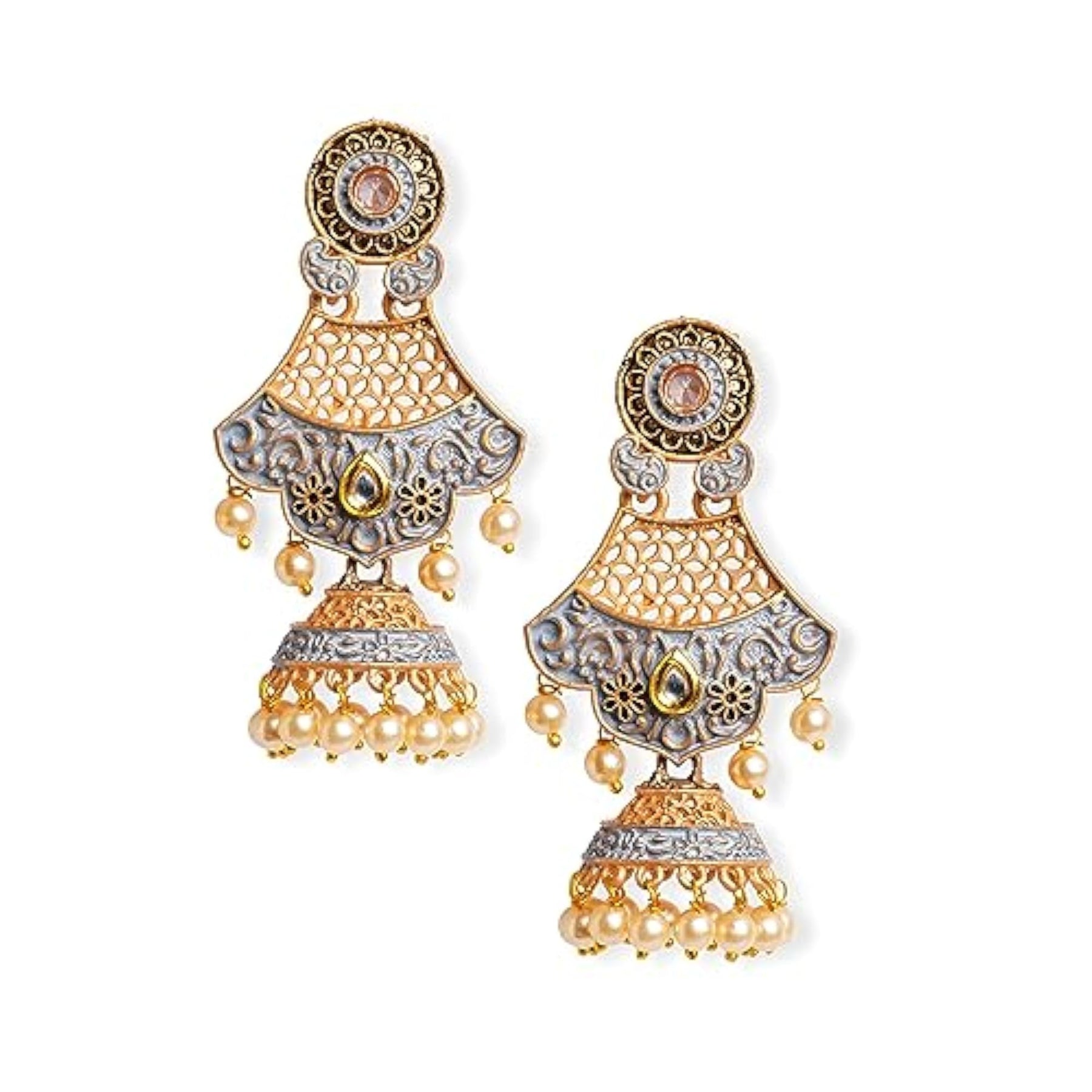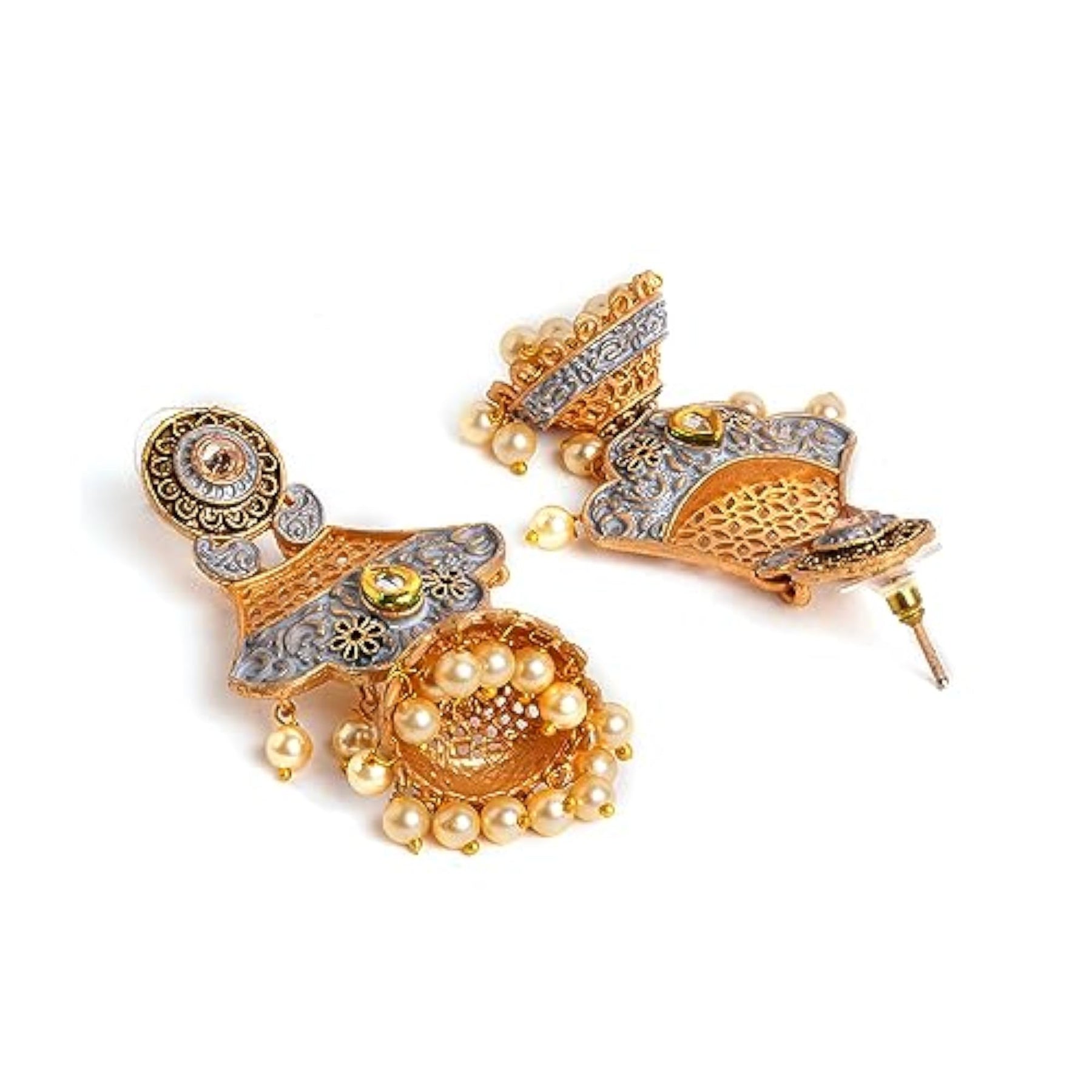 These stunning earrings combine traditional ethnic design with intricate detailing for a touch of cultural elegance.
