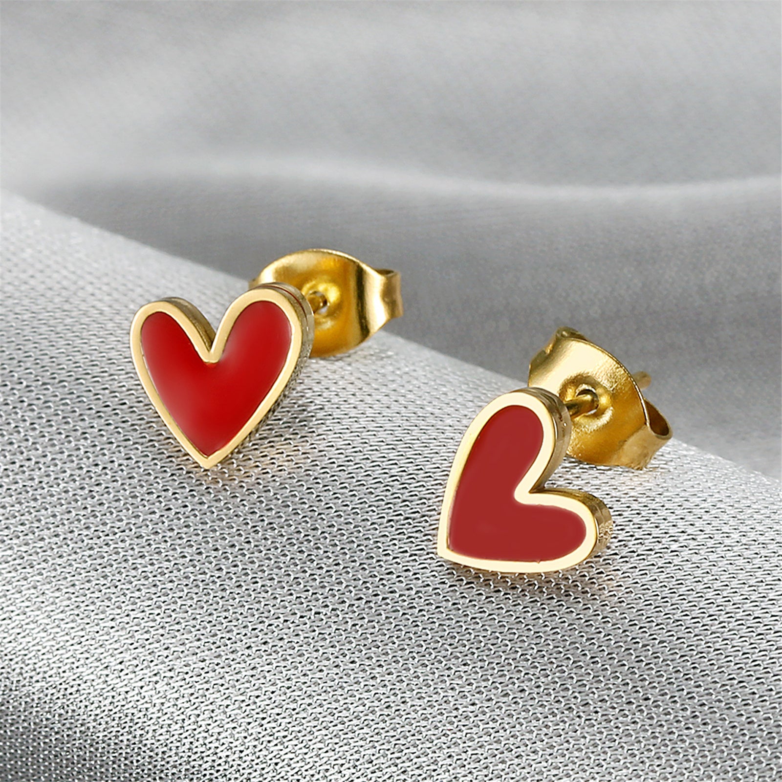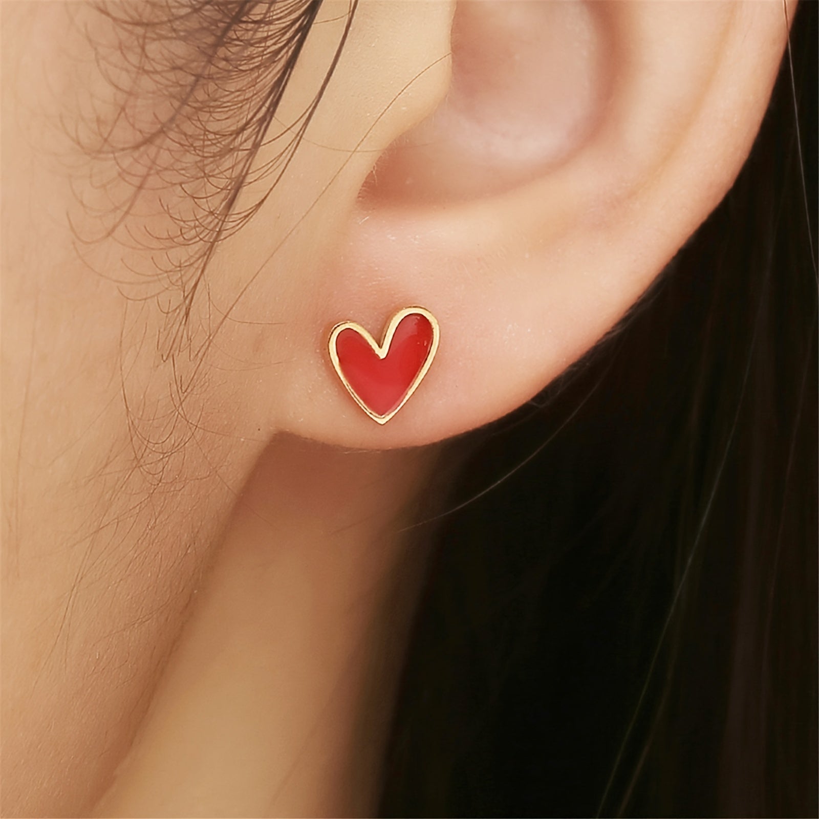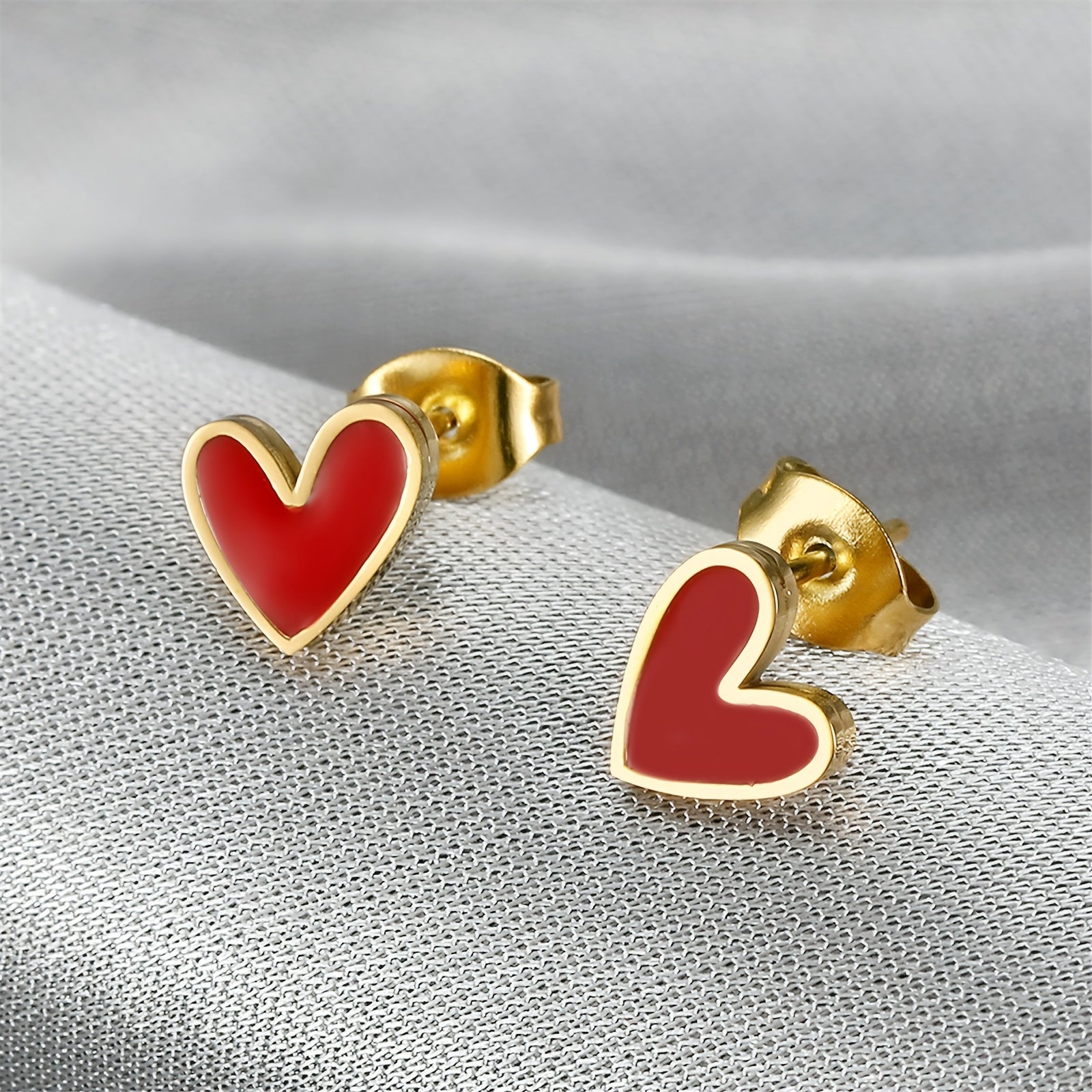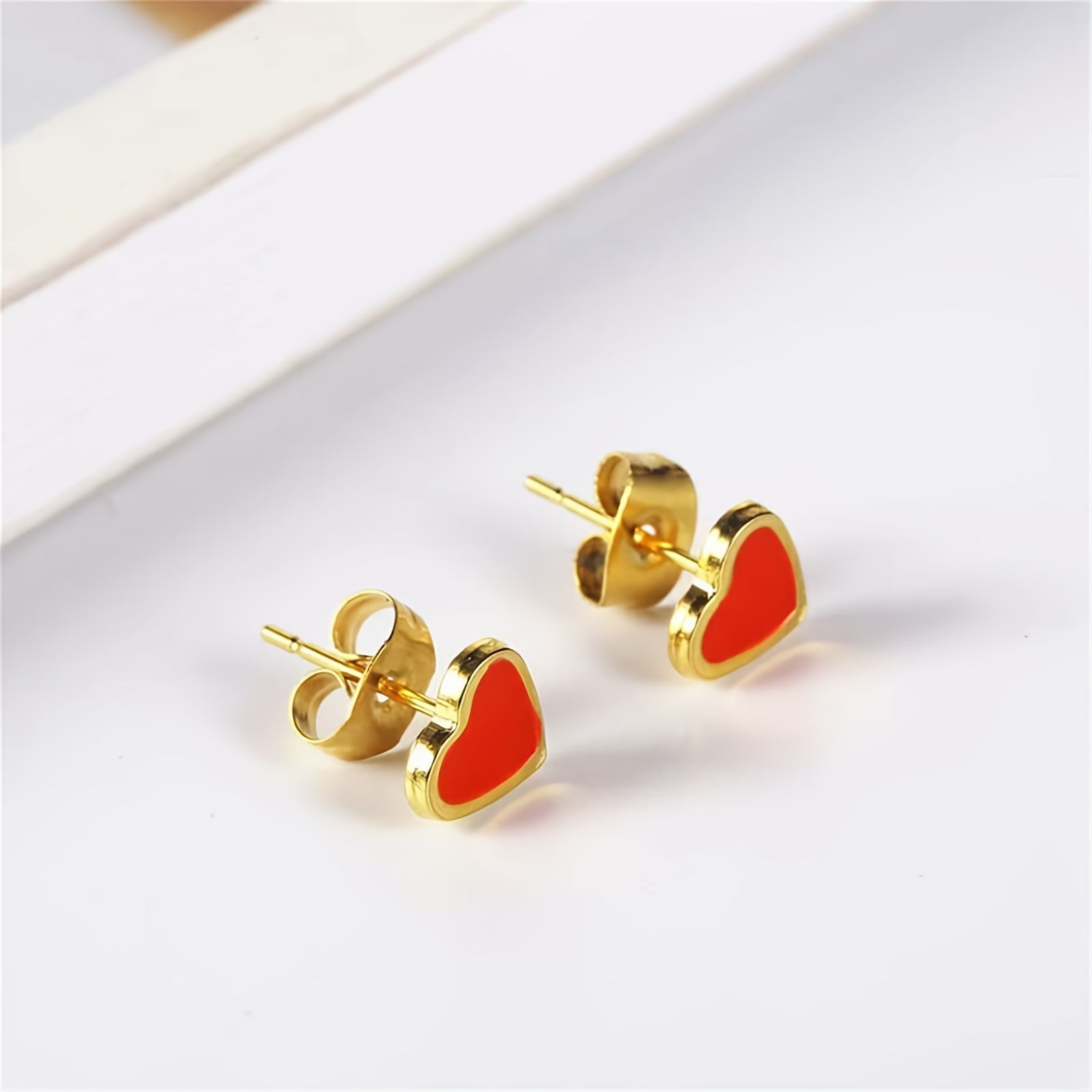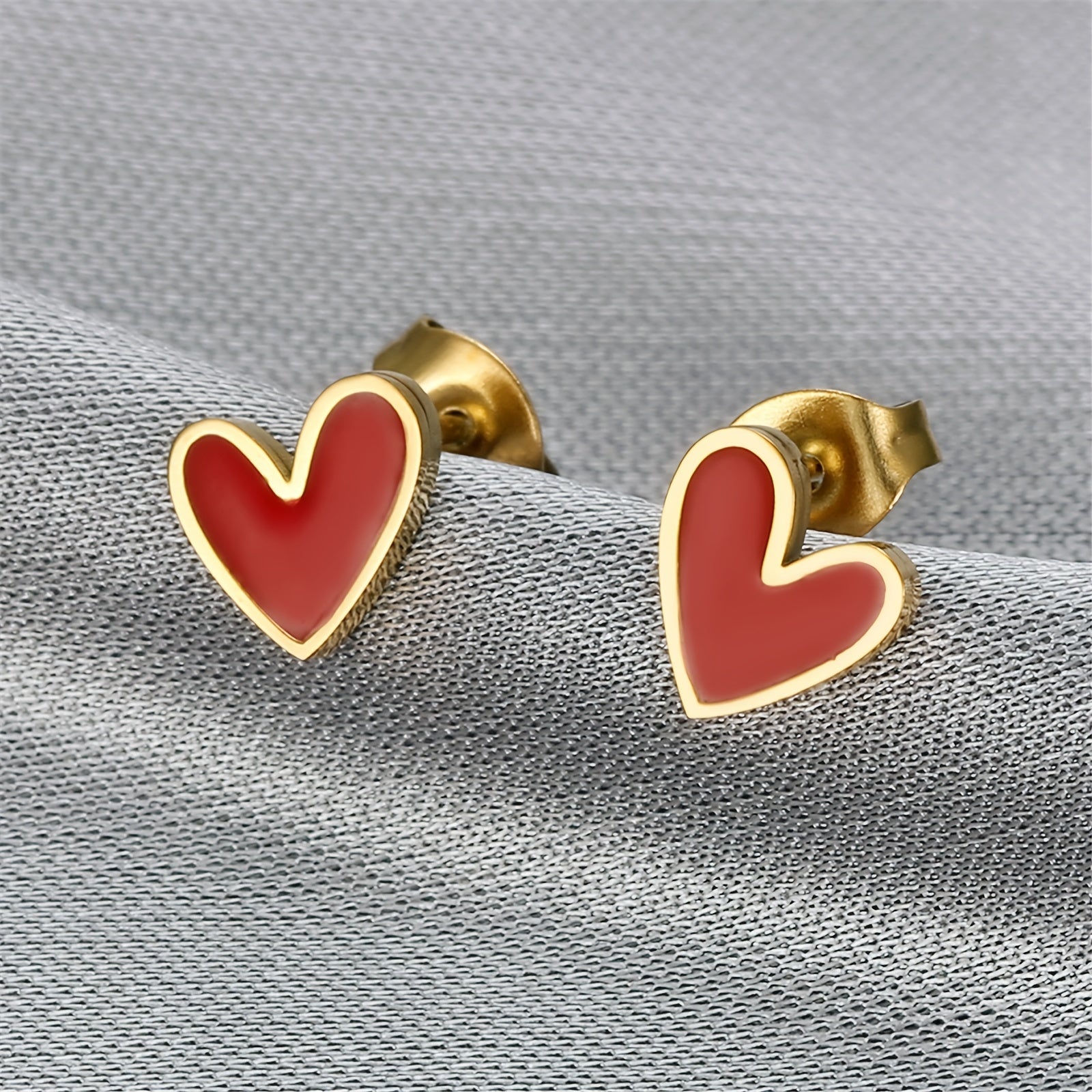 • Heart-shaped earrings in sweet pink color