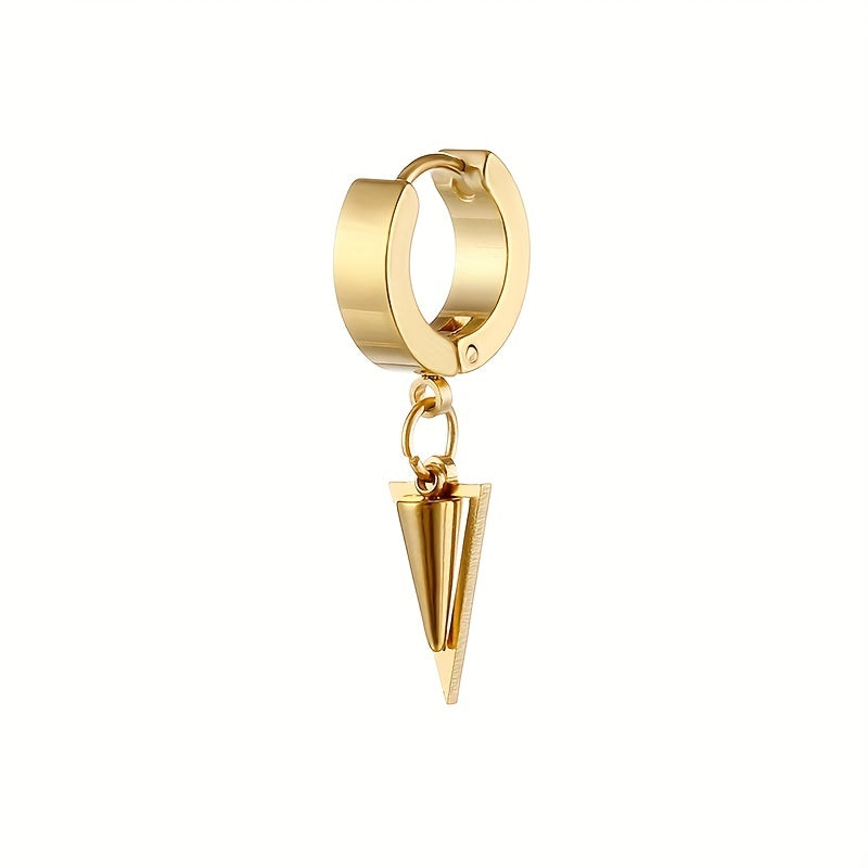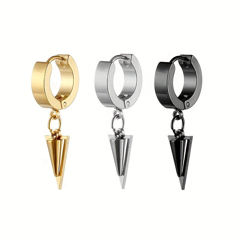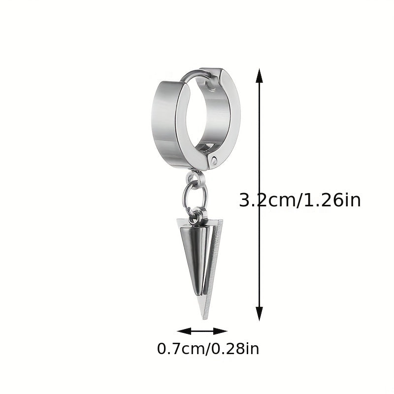 These pointed earrings are perfect for a punk or hip hop style with a tapered triangle design. Made of titanium steel, they are durable and stylish.